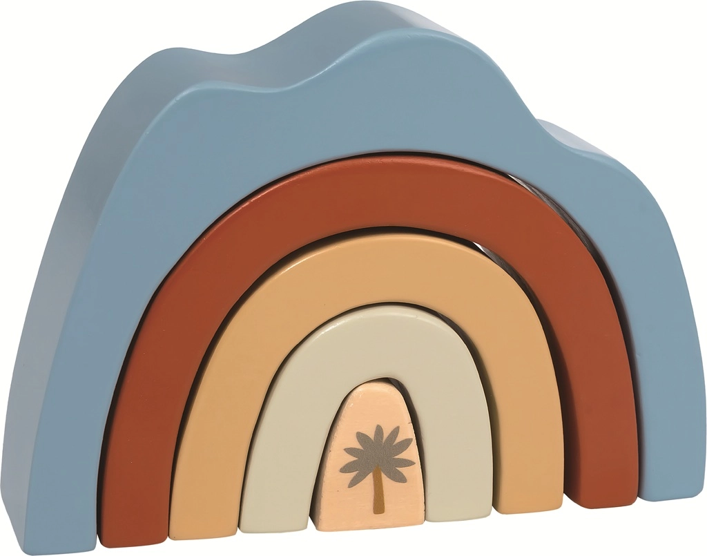 Този качествен дървен игрален сет 4 в 1 предлага на децата разнообразни активности: плъзгане на мъниста в лабиринт, сортиране на форми в цилиндър, подреждане на дъгови дъги по размер и откриване на елементи върху activity board-а. Играчките в нежни пастелни цветове с очарователни мотиви подпомагат съсредоточението, търпението и естественото любопитство.