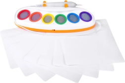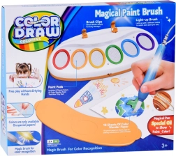 Вълшебната четка Color & Draw LED заменя класическите бои и вода с безопасна светлина. Детето избира цвят на базата с цветни подложки и го пренася върху приложените специални хартии – след миг цветовете засияват и картинката оживява. Креативно, чисто и интуитивно рисуване развива въображението и фината моторика.