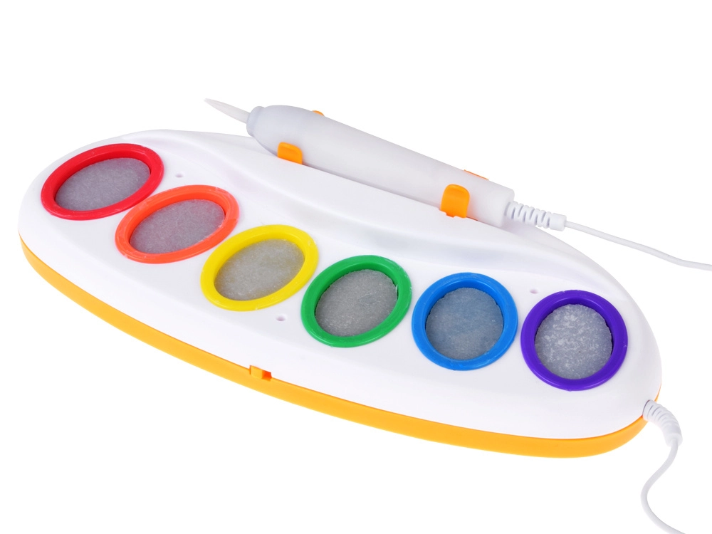 Електронната четка с LED светлина позволява на децата да рисуват и оцветяват върху специална хартия без капка вода и без петна по дрехите или масата.