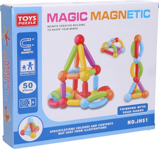 Този магнитен конструктор е идеален както за забавление, така и за учене. Здравите магнити осигуряват стабилно свързване, така че лесно могат да се създават както прости, така и по-сложни модели. Конструкторът подпомага логическото мислене и развитието на STEM умения.