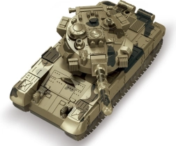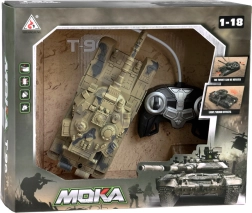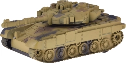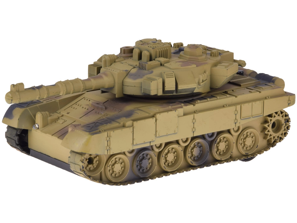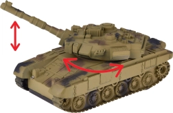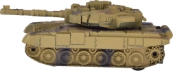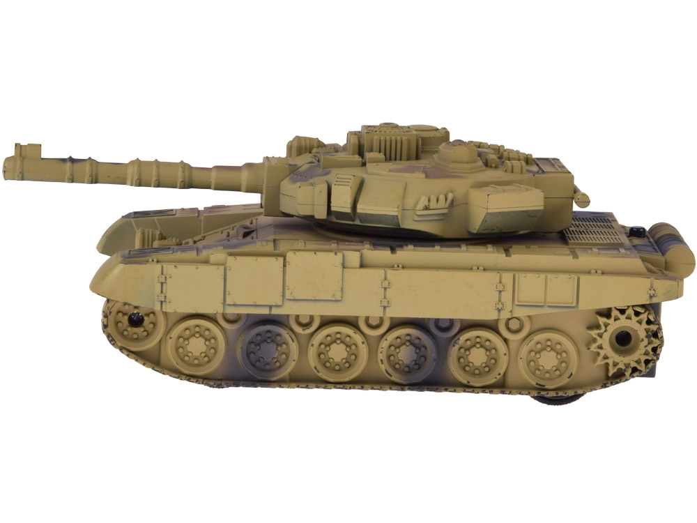 RC танк в пустинна камуфлажна окраска предлага реалистично управление на честота 27 MHz, въртяща се кула на 360°, светлинни ефекти и звучи на стрелба. Лесното управление, верижното шаси и презареждащ се акумулатор в комплекта гарантират дълга и забавна игра за деца и възрастни.
