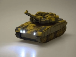 Ефектите на стрелба и светещите светлини създават атмосфера на истинска битка. Активират се с черния бутон на задната страна на танка.