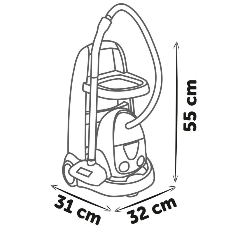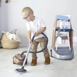 Детската прахосмукачка издава автентичен звук, който стимулира въображението и потапя децата в игра на почистване, сякаш използват истински уред.