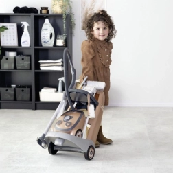Тази стилна почистваща количка с лиценз ROWENTA превръща домашното почистване в любима игра. Децата могат благодарение на реалистичната прахосмукачка с истински звук да имитират възрастните, докато ергономично оформените инструменти пасват идеално на детските ръчички. Леката и лесна за управление конструкция позволява безопасно боравене дори за по-малки деца.