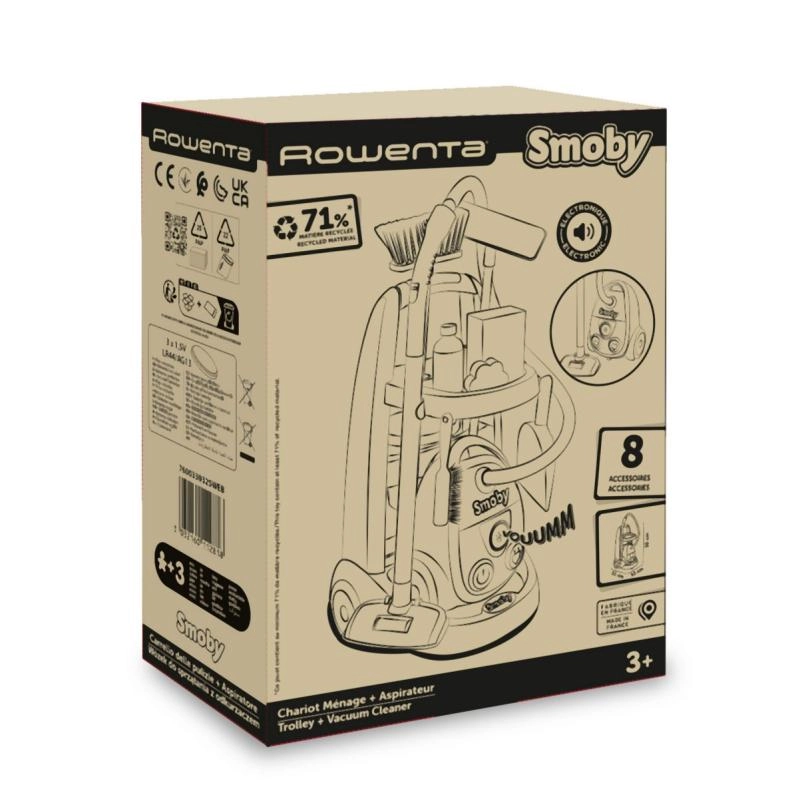 Открийте забавната детска почистваща количка с прахосмукачка ROWENTA, която носи реалистична игра на почистване. Истински звук на прахосмукачка, богати аксесоари и лека, компактна конструкция са идеални за деца от 3 години. Комплектът подпомага развитието на фината моторика, самостоятелност и отговорност и е изработен от минимум 71% рециклиран материал.
