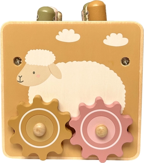Въртете колелата, пробвайте стрелките на часовника и откривайте причинно-следствени връзки. Механичните елементи развиват логическо мислене и фина моторика.