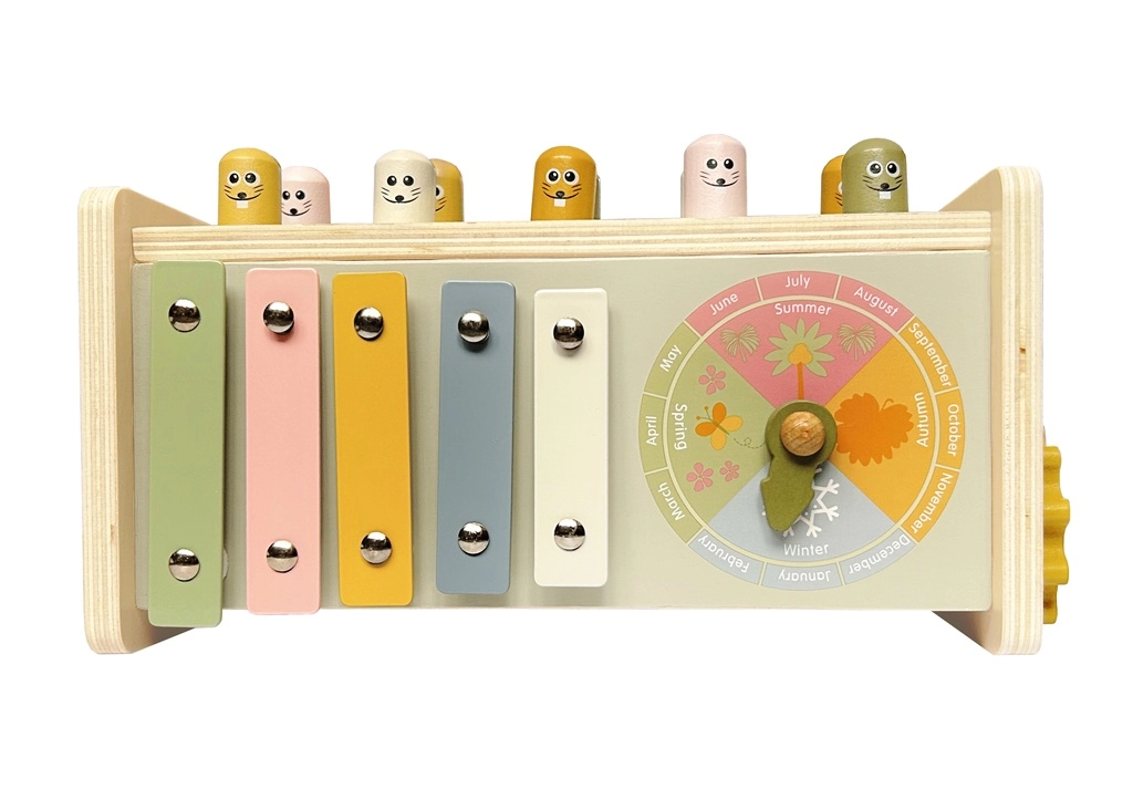 Весели фигурки и дървено чукче мотивират децата да тренират координация, сила на удара и ритъм. Здрава конструкция за ежедневна игра.
