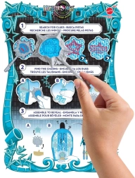 Поемете по следите на тайната с забавния комплект MONSTER HIGH Straszysekrety – Тайната на Hollyduch с куклата Frankie Stein. С помощта на ключа с лупа разкрийте символите на картата, отворете гардероба и открийте скритите изненади. След като сглобите талисмана, го поставете в основата на гардероба и с движение нагоре тържествено разкрийте Frankie в нейната електризираща стилизация.
