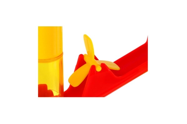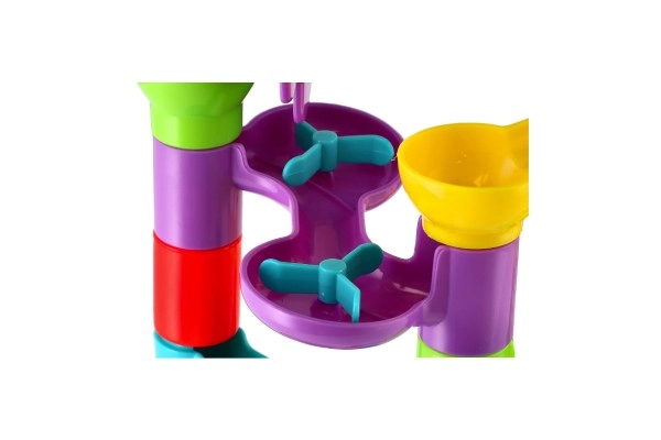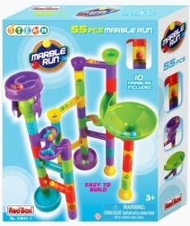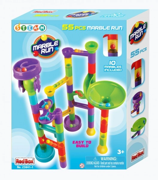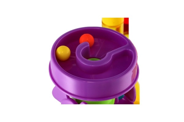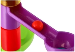 Тази пластмасова писта за топчета с 55 части позволява на децата да строят разнообразни трасета и да изпробват кое топче е най-бързо. Благодарение на различните препятствия и въртящи елементи всяко спускане е различно и изпълнено с напрежение. Комплектът развива креативността, търпението и координацията око–ръка.