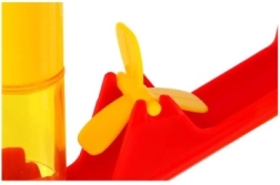 Отделните компоненти са в весели цветове, лесно се съединяват и са проектирани за безопасна игра. Децата могат да експериментират с височината, наклона и реда на препятствията и така да разберат основните принципи на скоростта и гравитационното движение.