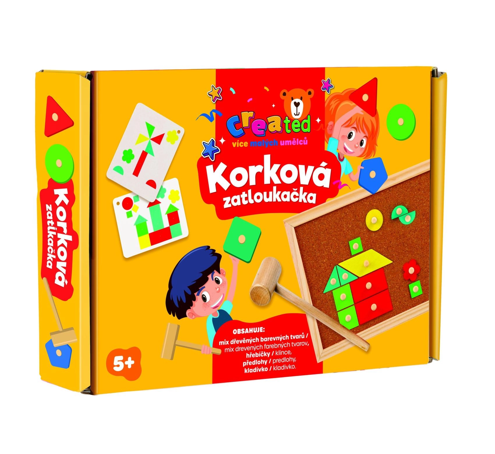 - Всичко в едно: дървени форми, чукче, пирончета и коркова дъска.