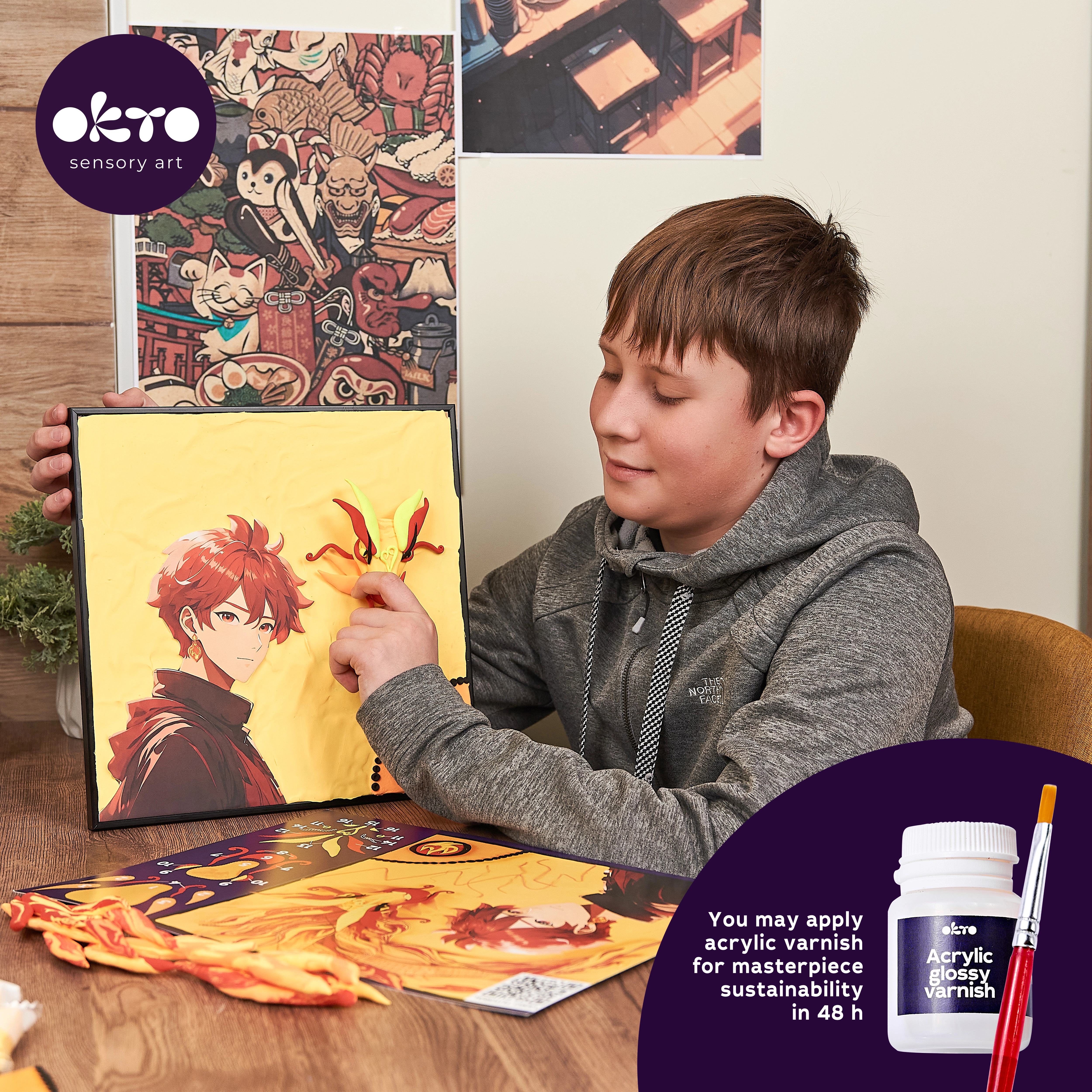Обичате манга стила и искате да украсите интериора си с оригинално произведение? Комплектите OKTO ви позволяват лесно да създадете собствена картина с мотива на стиихията Огън. Благодарение на ясното илюстрирано ръководство и пълния набор аксесоари проектът е подходящ и за начинаещи.