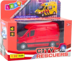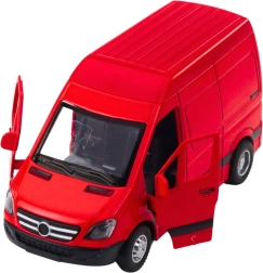 Реалистичен метален ван в мащаб 1:32 в наситено червен цвят ще зарадва малките почитатели на автомобилите. Предлага отварящи се врати, светлинни и звукови ефекти и е готов за употреба благодарение на батериите в комплекта. Страхотен избор както за игра, така и за колекционерска витрина.