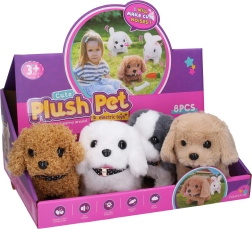 Очарователното ходещо плюшено кученце с размер 16 см носи на децата много забавление. След включване ходи, маха с опашка и лае. Налични са 3 цветови варианта (бял, кафяв, жълт). Лесно управление благодарение на ON/OFF превключвател от долната страна. Захранване с 2× AA батерии (не са включени).