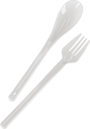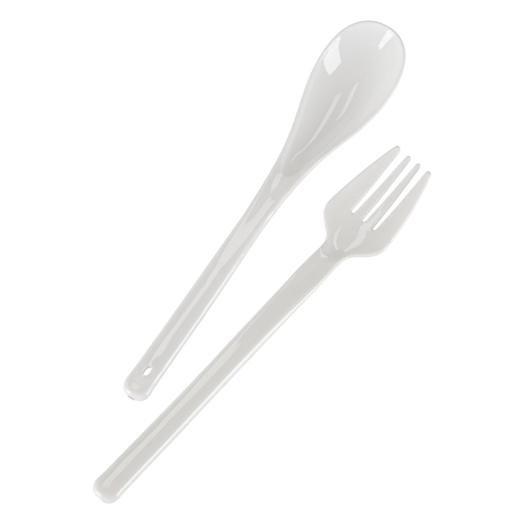 В комплектa има лека пластмасова вилица и лъжица. Кутията може да се мие в съдомиялна и да се използва в микровълнова (без капачето).