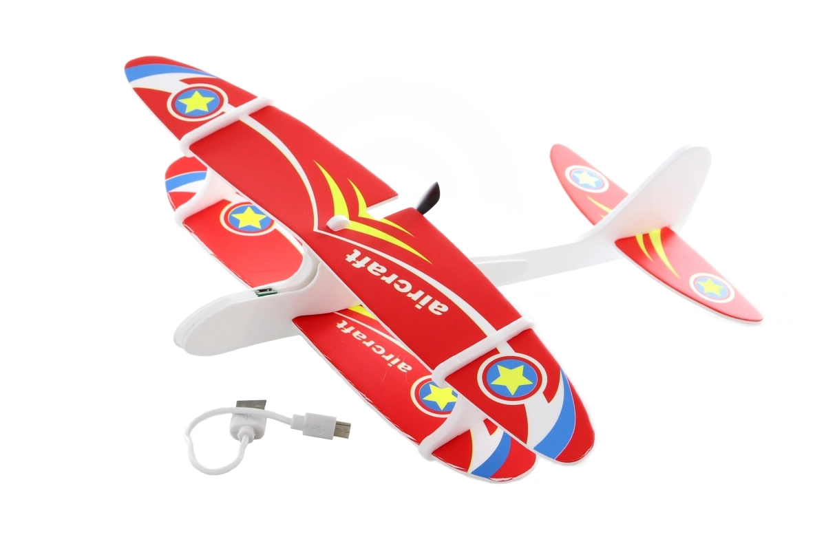 Този сгъваем самолет е идеалната играчка за начинаещи летци. Благодарение на устойчивия полистирен е лек, лесен за управление и след зареждане през USB може да лети, да свети и да издава реалистични звуци. Сглобяването е интуитивно и с него се справят и деца – препоръчва се надзор от възрастен.