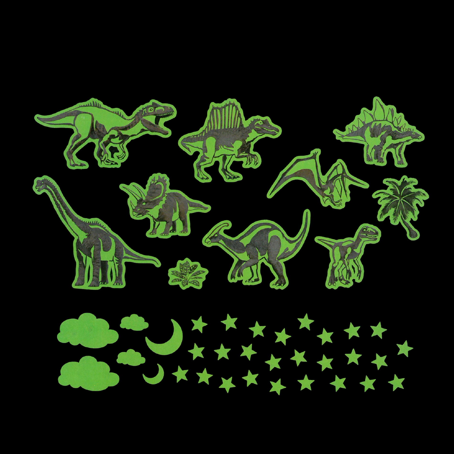 Превърнете стаята в праисторически свят с динозавърските стикери, които нежно светят в тъмното след предварително осветяване. Инсталацията е бърза и чиста – просто отлепете и залепете върху гладка, суха повърхност. Идеални за детски стаи, игрални кътове или като оригинална декорация върху мебели.