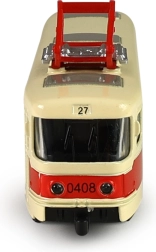 Този метален трамвай T3 с дължина около 16 см вярно пресъздава легендата на градските релси – най-разпространения трамваен вагон в света. Здравата изработка в комбинация с прецизни детайли, пантограф и двуцветно боядисване придават реалистичен вид за колекционерски витрини и креативна игра.