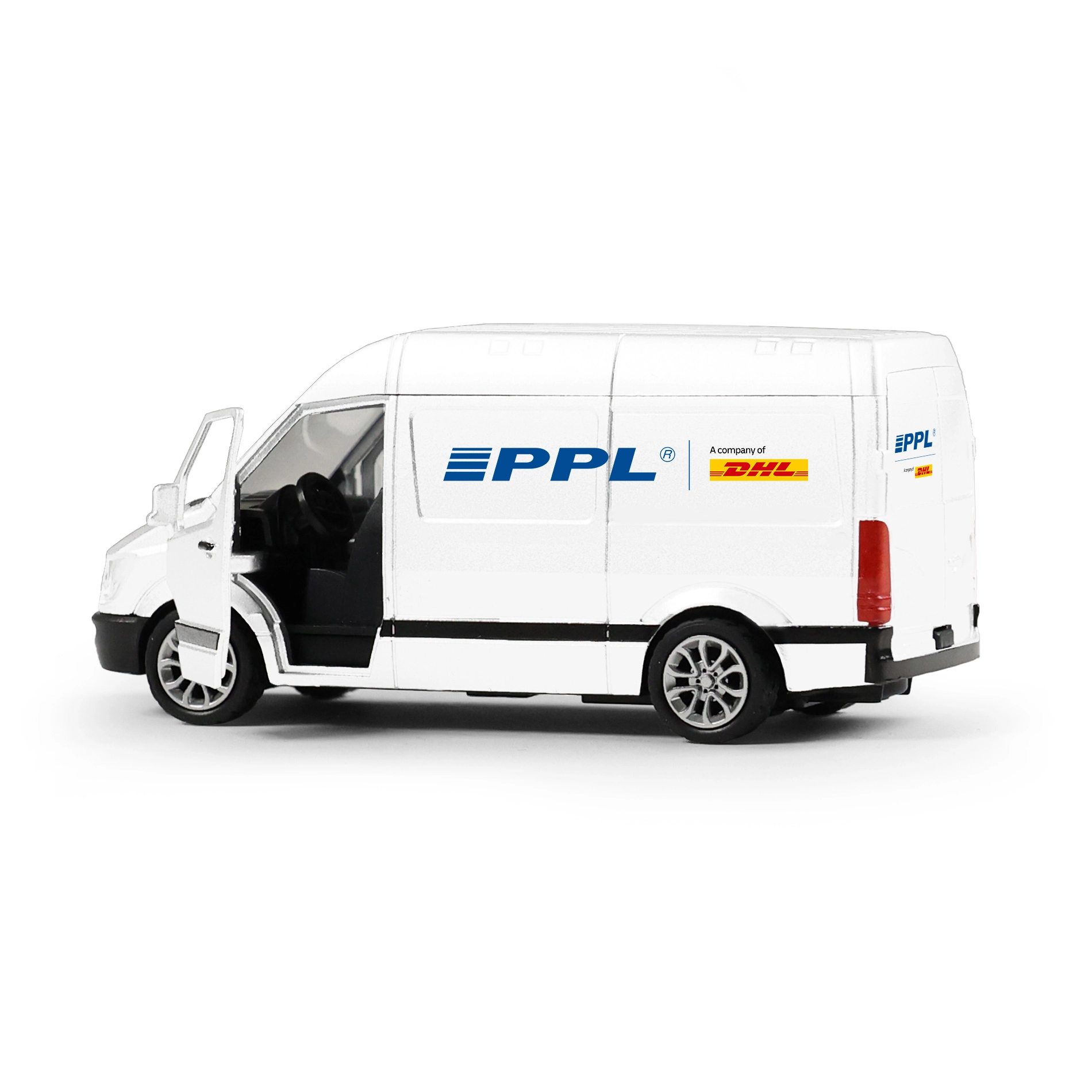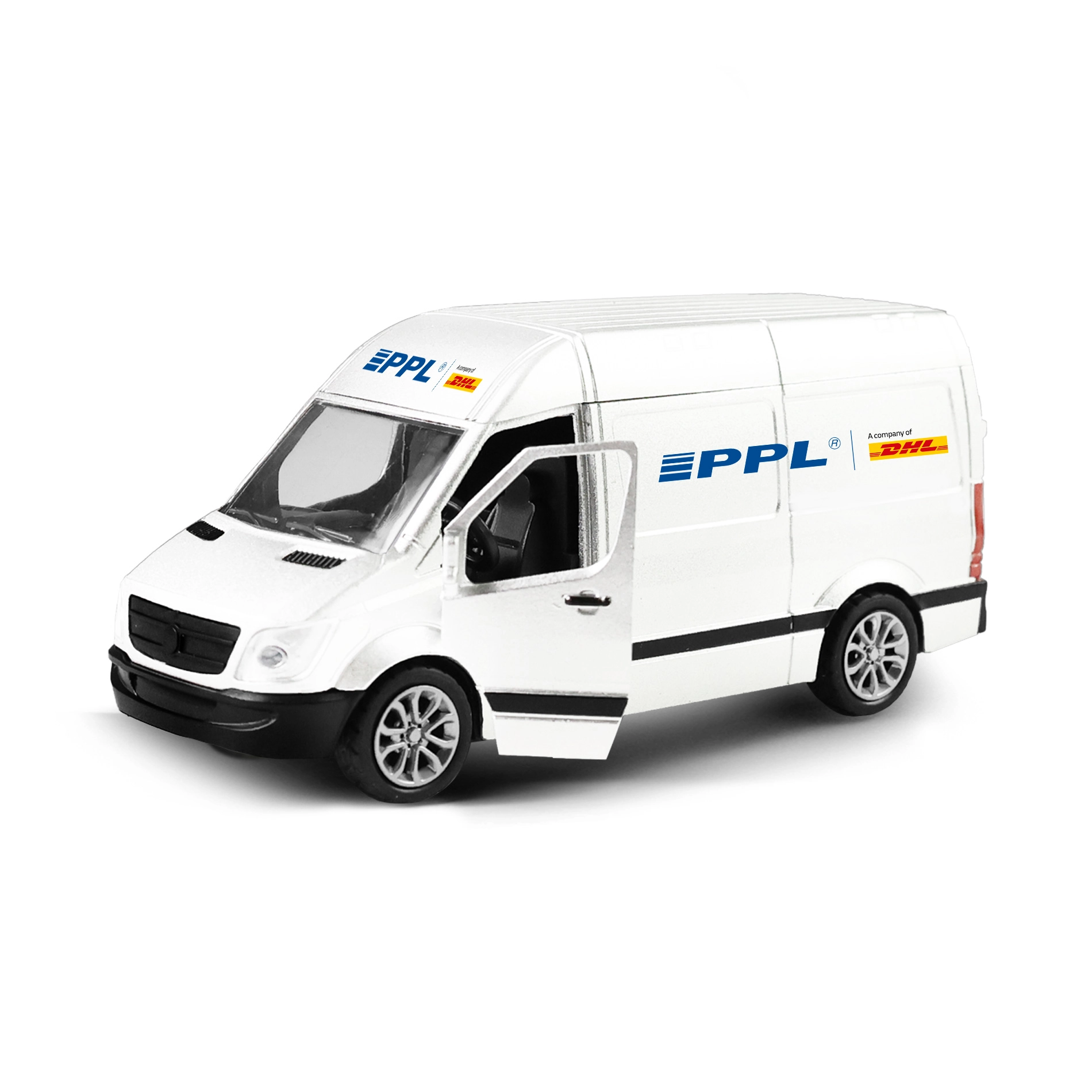 Разширете автопарка си с реалистичен метален ван с логото на PPL. Моделът с дължина 12 см предлага отварящи се предни врати, pull-back механизъм за пъргаво движение и детайлно изпълнение на каросерията – идеален както за колекционери, така и за детска игра.
