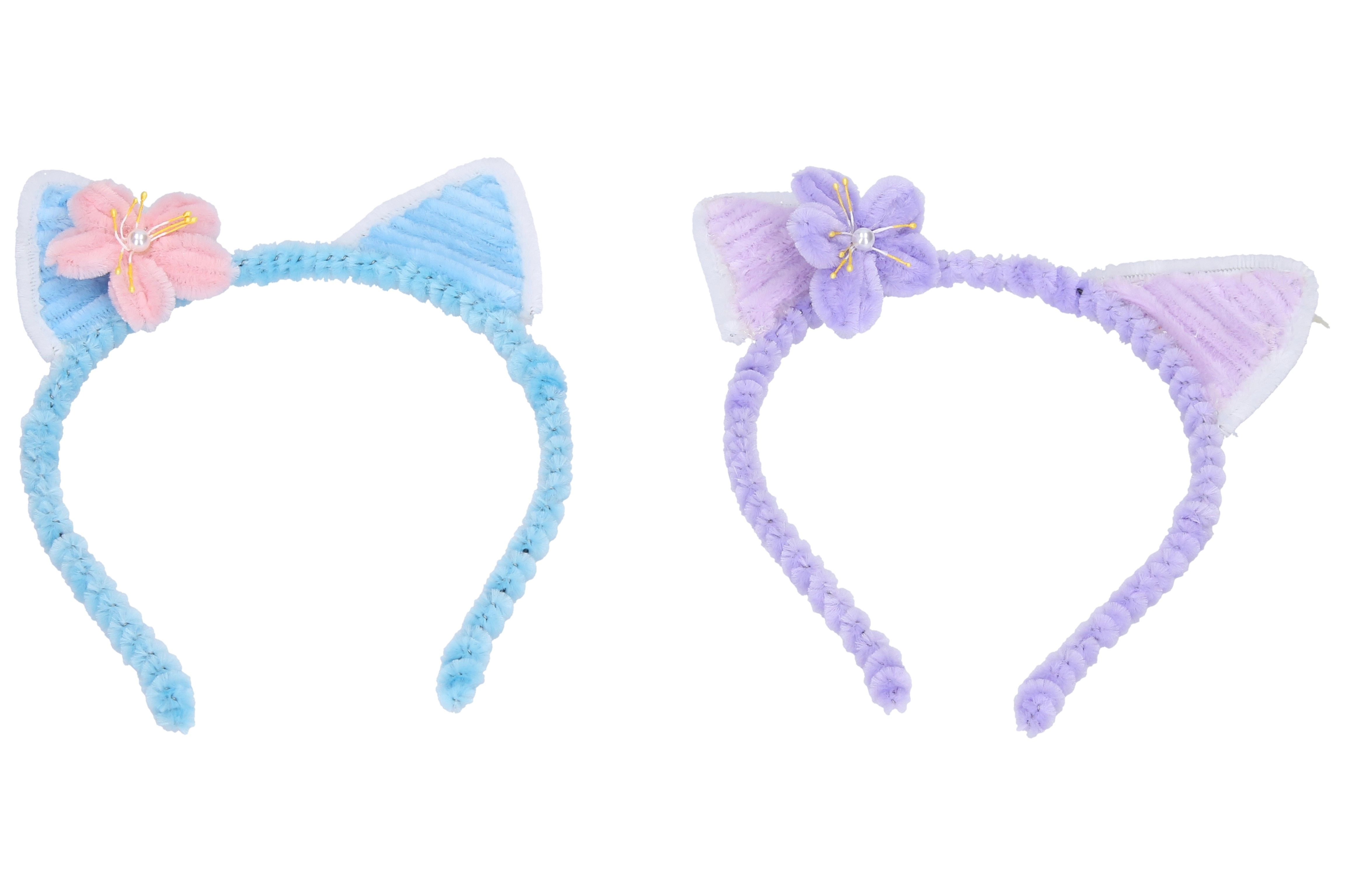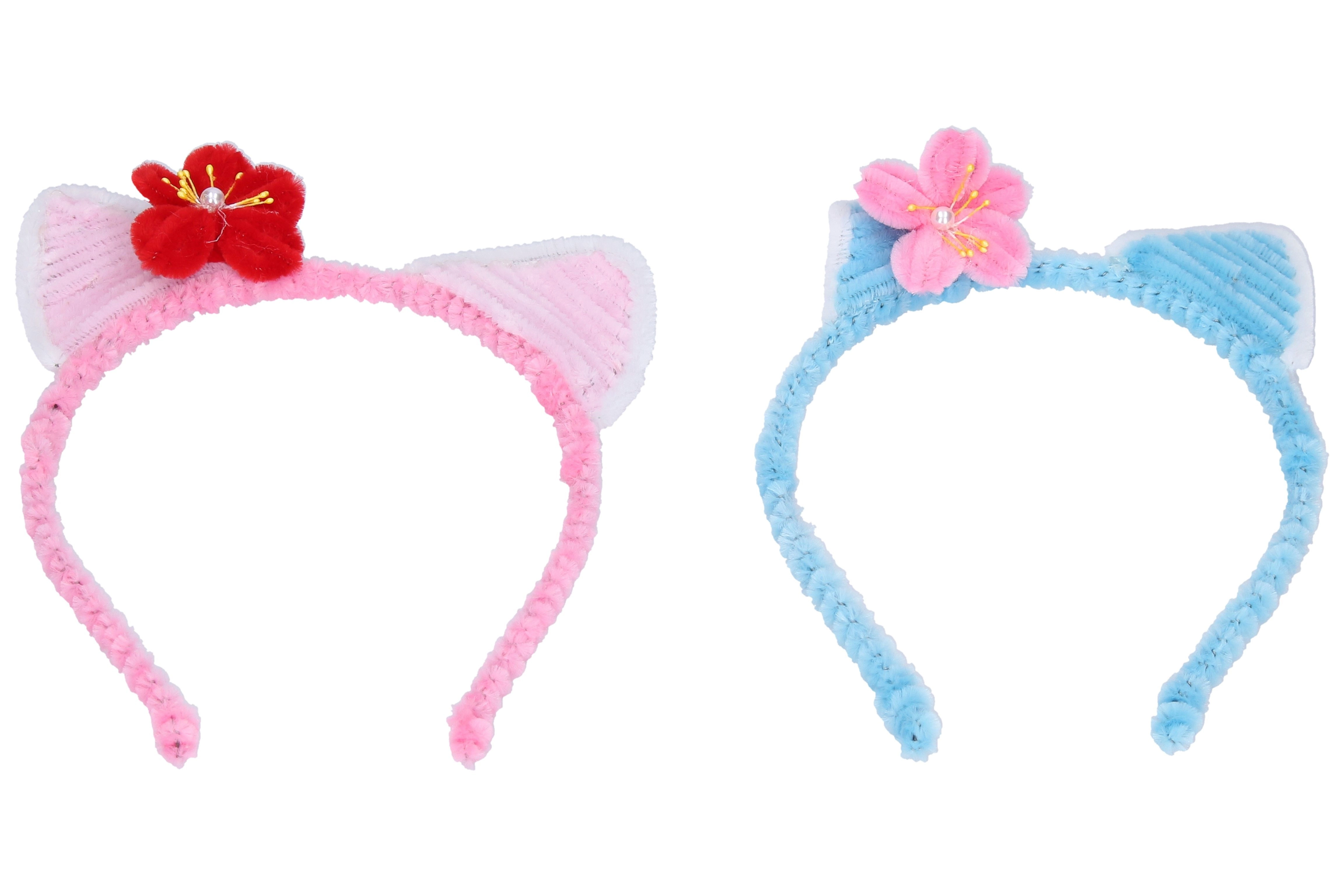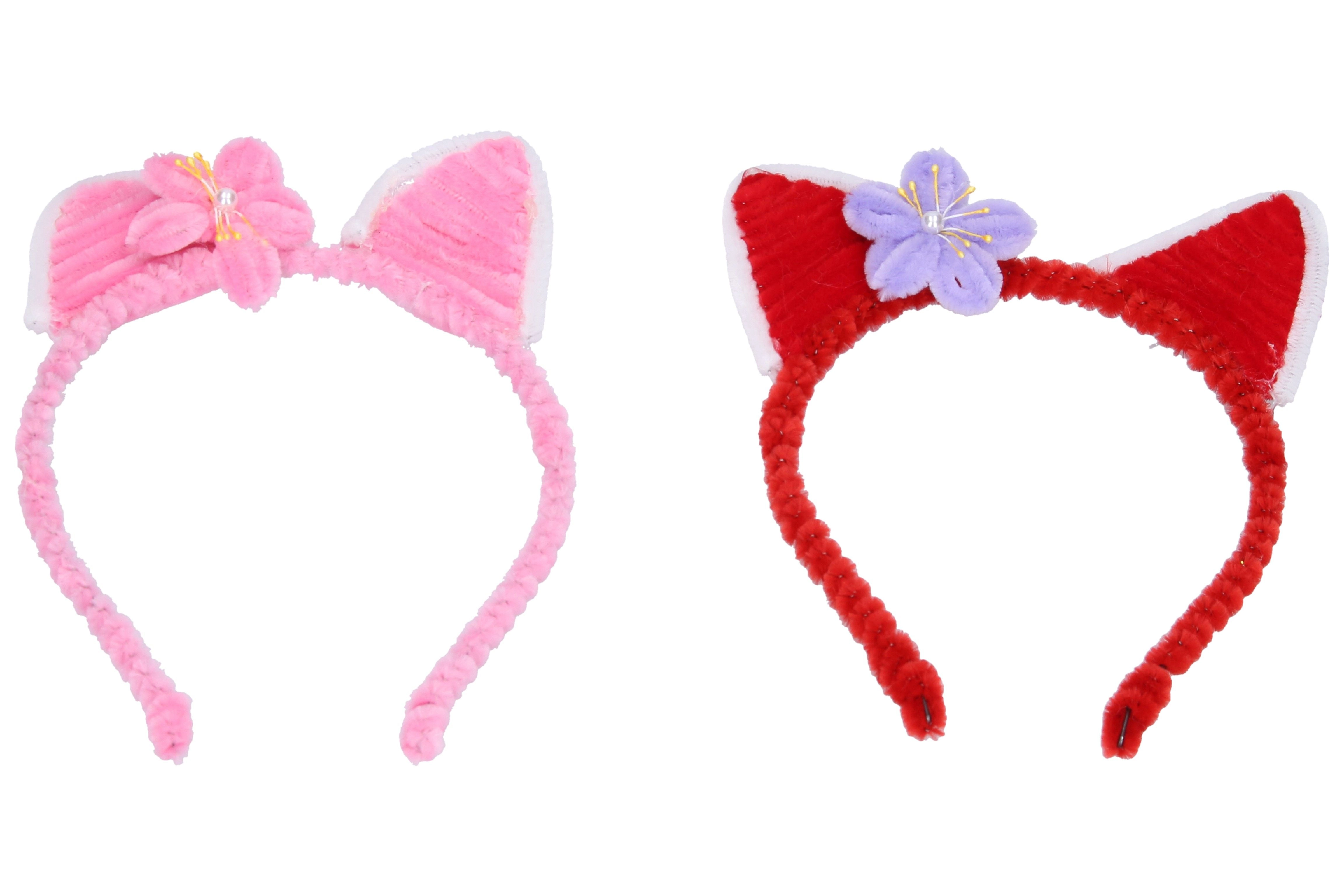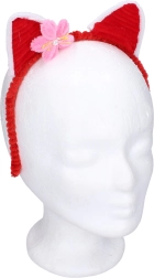Сладък карнавален обръч за коса с котешки ушички и нежна цветна украса, който ще зарадва деца и възрастни. Благодарение на мекия плюшен материал стои удобно, държи косата на място и придава на тоалета ви игрив, очарователен вид. Предлага се в микс от цветове за лесно съчетаване с костюм или ежедневен стил.