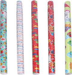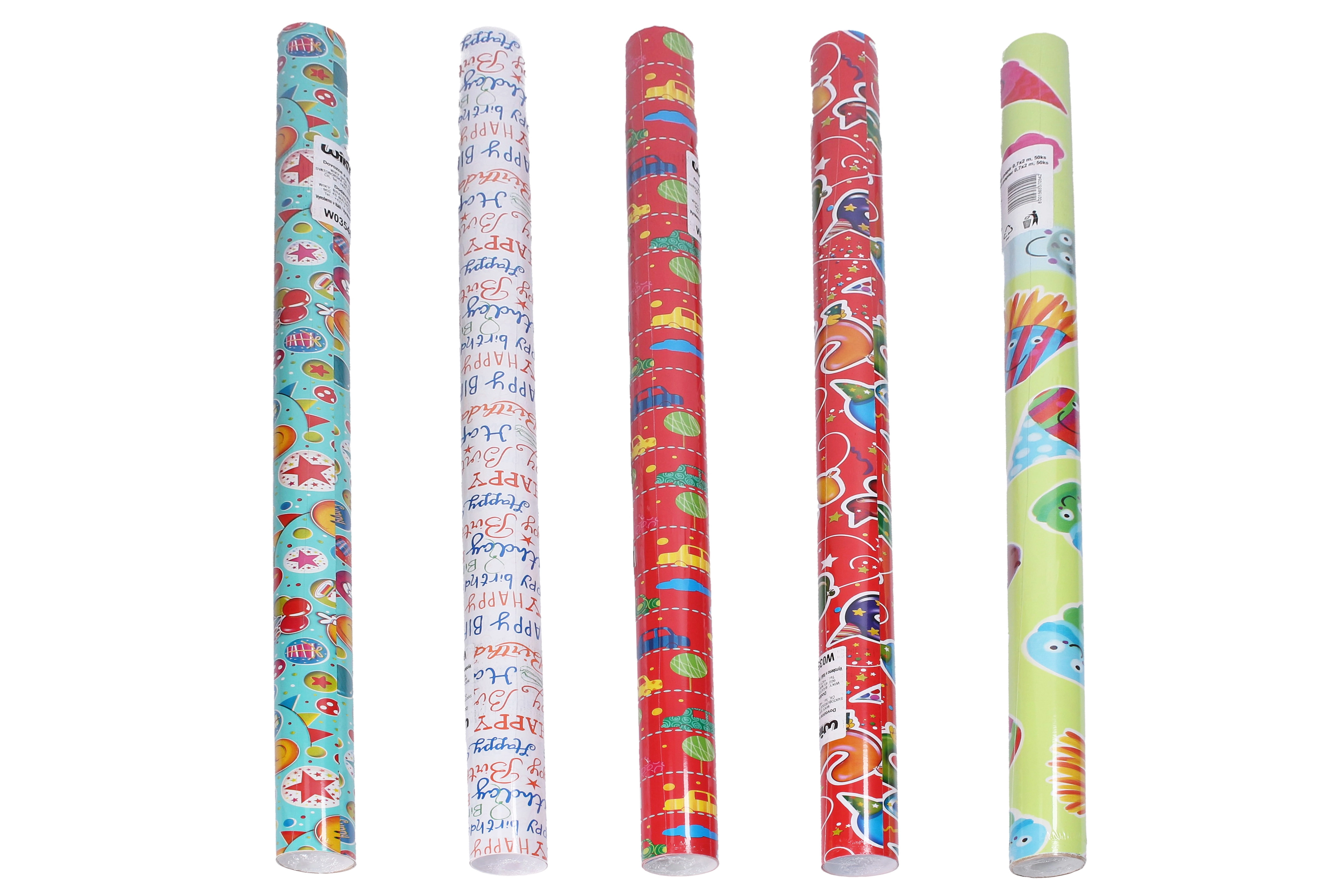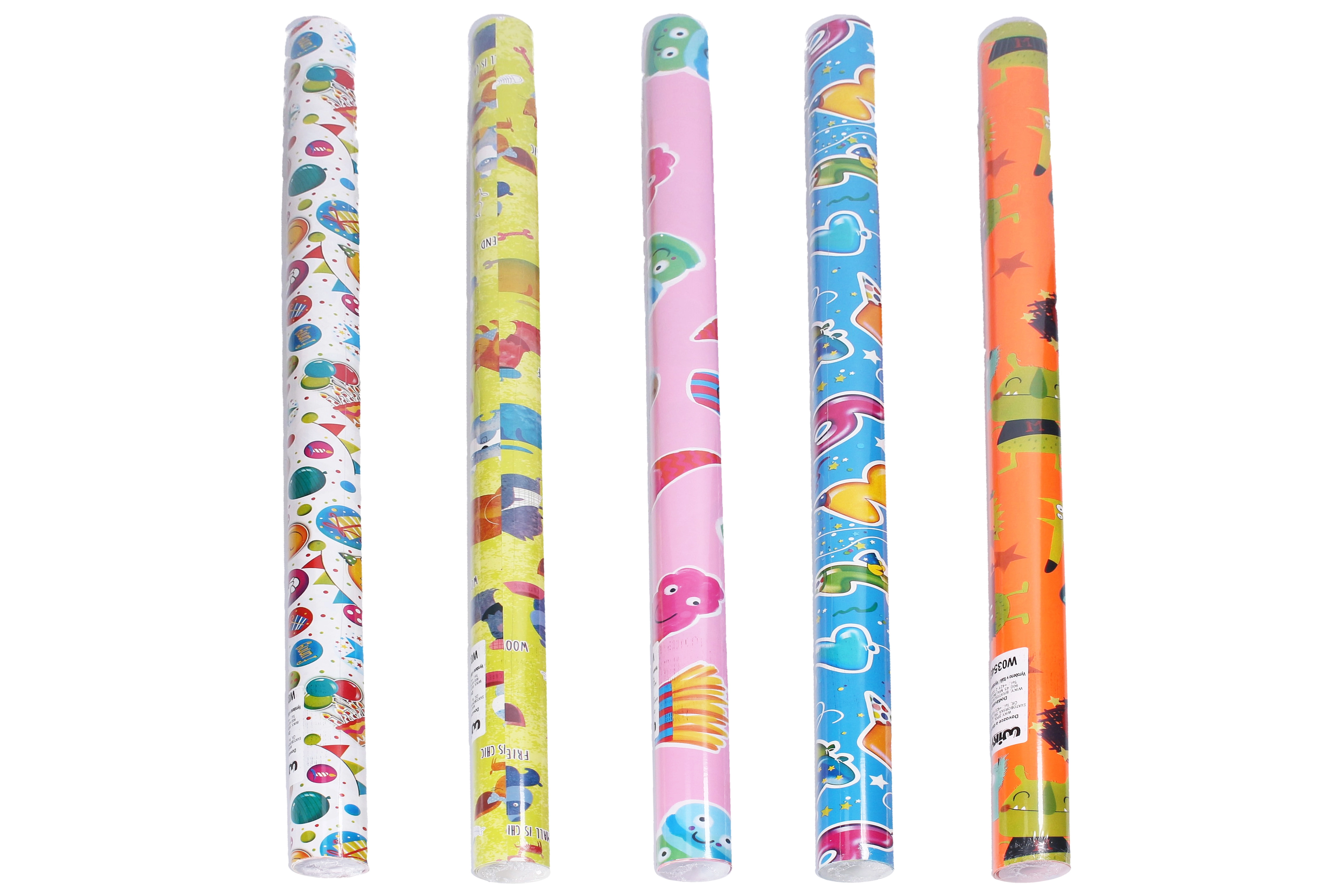 Весела опаковъчна хартия с детски мотиви във формат 0,7 × 2 м, идеална за опаковане на рождени подаръци и малки изненади. Предлага цветен микс от шарки, реже се лесно и добре запазва формата при опаковане.
