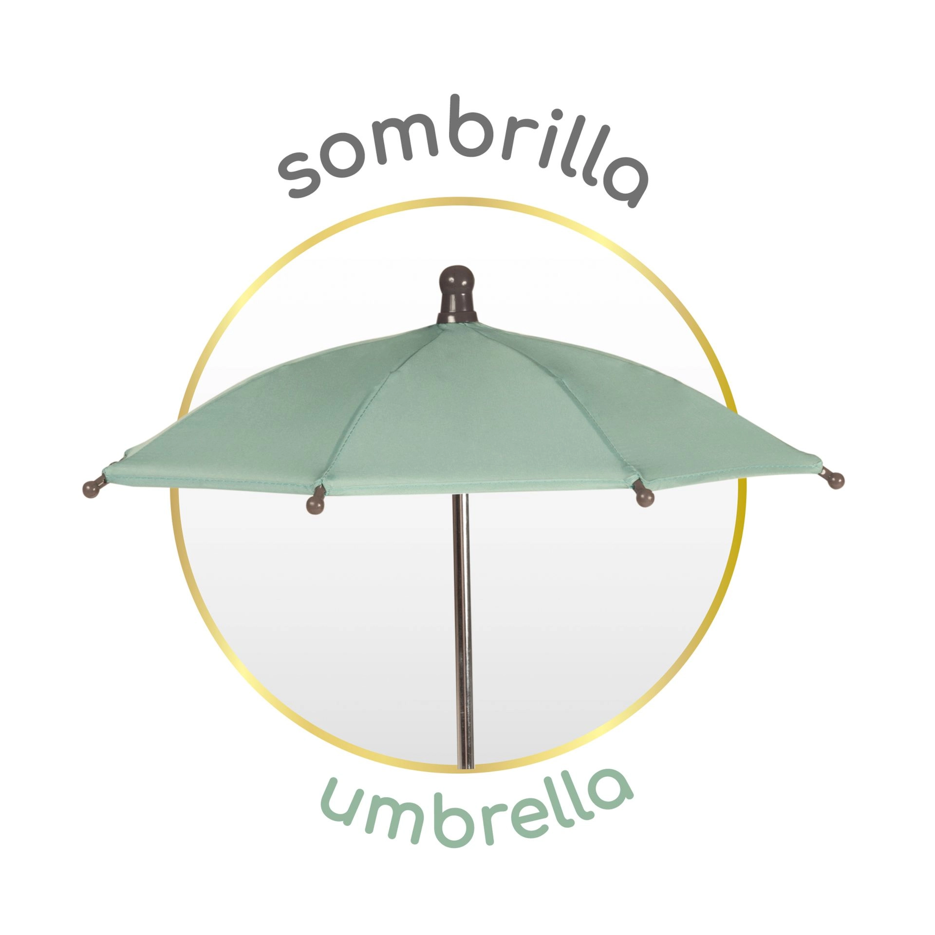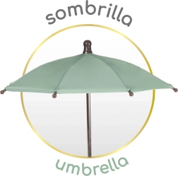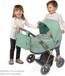 Количката е отлично оборудвана за всекидневна игра – от сгъваем слънчобран и сваляема чанта със златни ципове до мек матрак и просторен кош за дребни вещи. Прецизната изработка и испанският дизайн подчертават качеството и дългия живот на продукта.