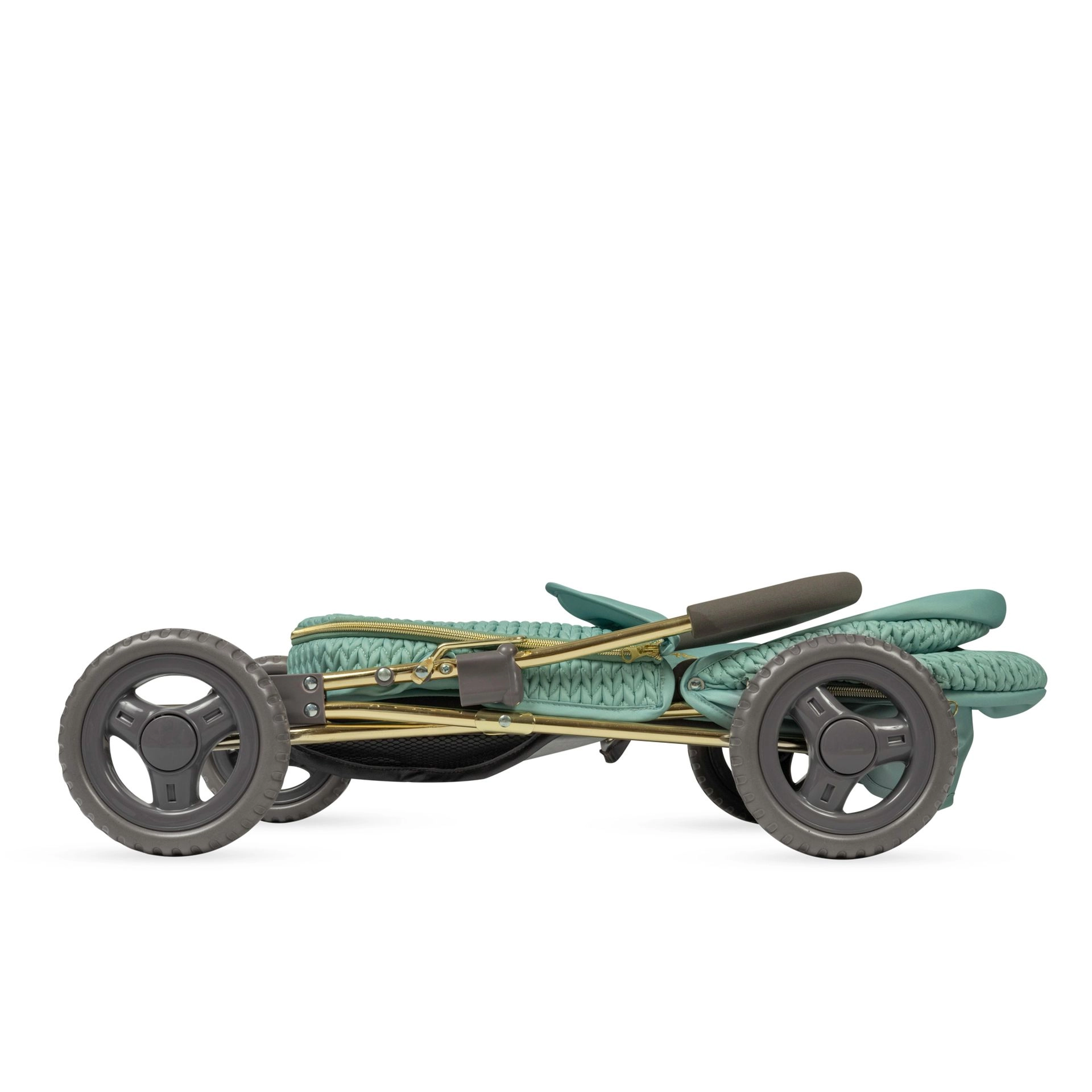 Открийте детската количка за кукли от колекция Capriccio 2025 с неповторим ментово зелен цвят и елегантни златни детайли. Комбинацията от трикотажна имитация и гладка материя придава луксозен вид, а леката рамка и по-ниската дръжка осигуряват удобно управление дори за по-малки деца.