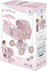 Елегантната количка за кукли от колекция SOPHIE очарова с нежния си дизайн в розови нюанси, сгъваемата конструкция и богатото оборудване. Включва слънчобран, подвижна чанта, мека матрачe и пространство за съхранение в долната част. Благодарение на височината на дръжката 60 см и ниското тегло, децата лесно я управляват. Идеална за малки госпожици от 3 години.
