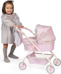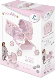 Очарователната количка за кукли от колекция Sophie е създадена с акцент върху комфорт, безопасност и лесна маневреност. Светлорозовият дизайн е допълнен от дискретни сиви и бели детайли, които подчертават романтичния стил. Благодарение на ниската дръжка и леката конструкция е подходяща най-вече за най-малките госпожици.
