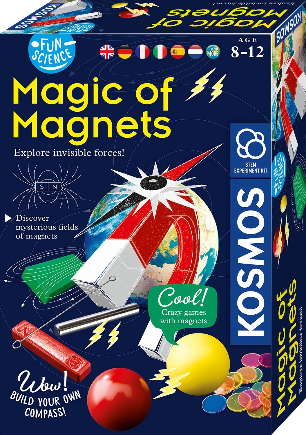 Този образователен комплект въвежда децата във физиката чрез практични експерименти. Достъпно обяснява как работят магнитите и развива логическото мислене, сръчността и любопитството. В кутията ще намерите всичко необходимо за провеждане на опитите – от магнити до допълнителни аксесоари.