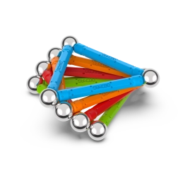 Здравите пластмасови пръчки и лъскавите метални топчета се захващат надеждно благодарение на магнитите. Конструкцията е стабилна и лесна за пренареждане.