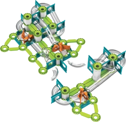 Благодарение на 197 части и модулната конструкция лесно създавате 11 различни модела – от бързи състезателни околовръстни писти до технически лупинги. Комплектът подпомага STEM уменията, развива пространственото въображение и учи децата на принципите на причинно-следствените връзки.