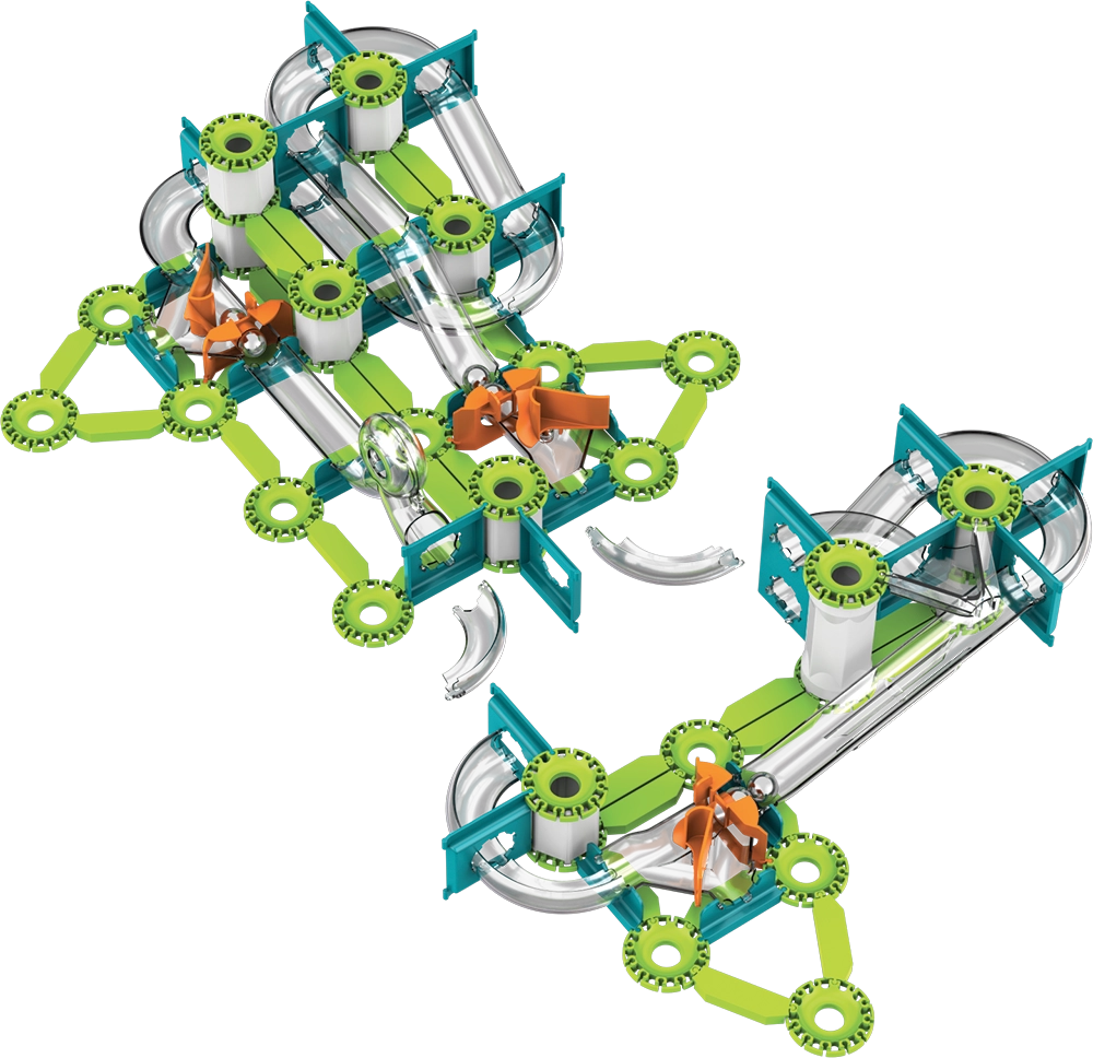 Сглобете до 11 различни околовръстни писти и лупинги, където топчетата се задвижват от гравитацията. Изпробвайте бързи спускания, завои и лупинги.
