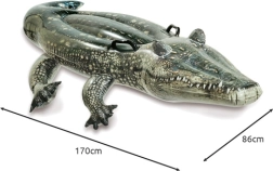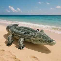 Широката плоска и стабилна повърхност помага за запазване на равновесието – децата могат удобно да седят или лежат без риск от преобръщане. След изпускане крокодилът се сгъва лесно и заема минимално място в куфара или плажната чанта. Реалистичният дизайн и щедрите размери 170 × 86 cm гарантират, че ще се превърне в любима атракция край басейна и на езерото.
