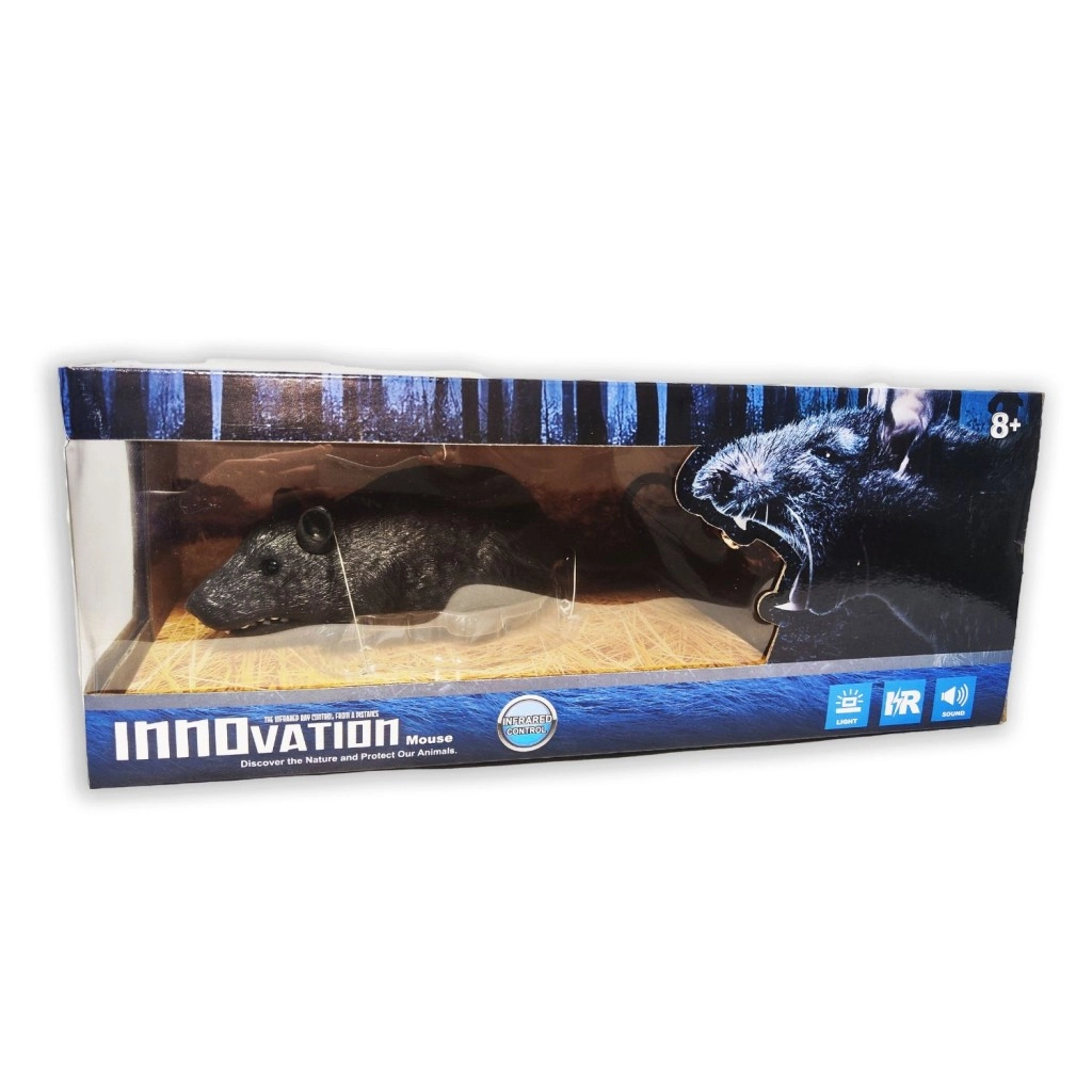 Реалистично изработеният RC плъх с инфрачервено управление носи много забавление у дома и на парти. Благодарение на светещите очи и подвижната уста изглежда „жив“ и ефективно привлича вниманието. Управлението е интуитивно – можете да стартирате демо режим или да управлявате плъха ръчно и да го пуснете да препуска напред.