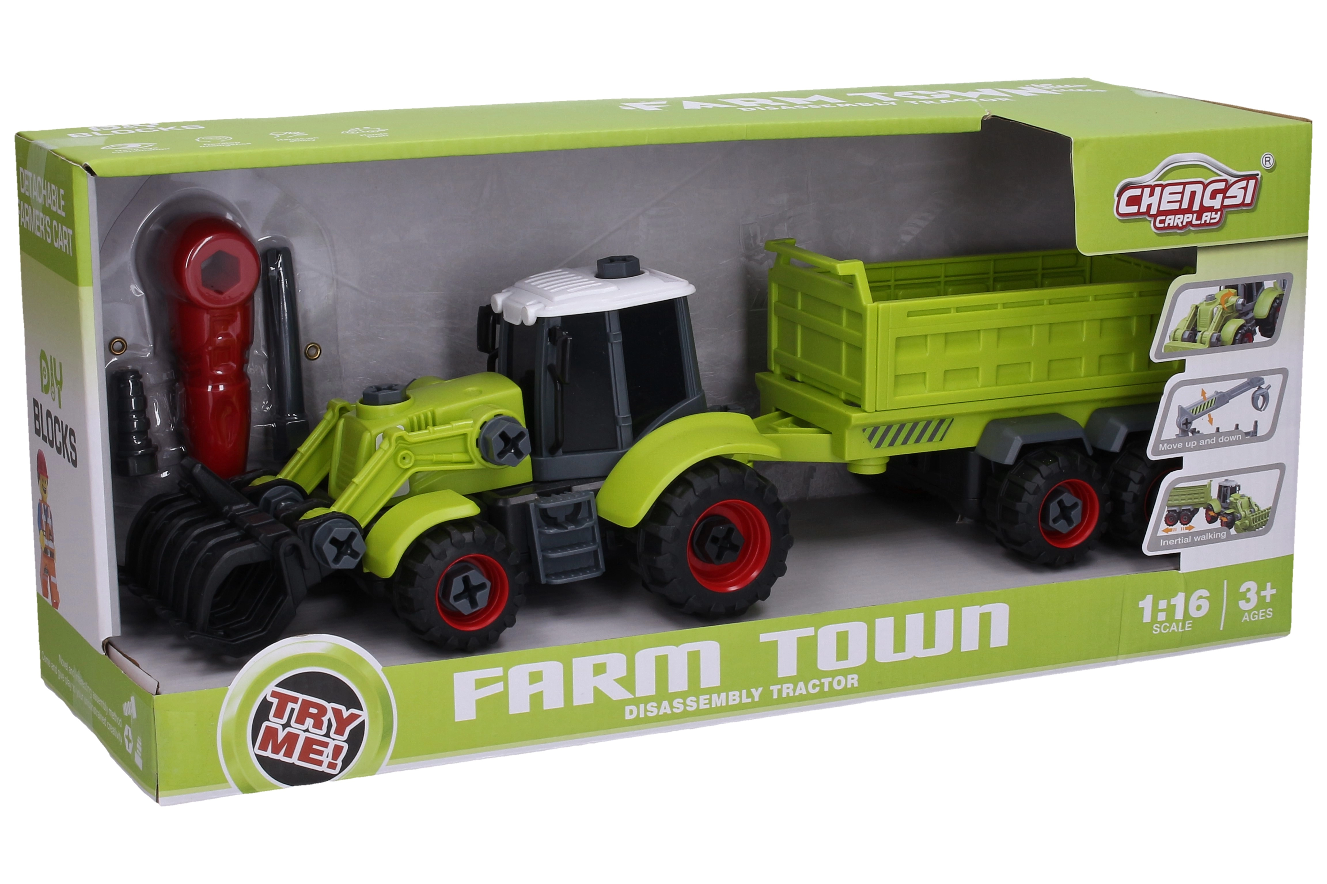 Открийте строително изживяване с реалистична селскостопанска машина. Този винтов трактор с функционален товарач и отделящо се ремарке е идеален за домашната работилница на всеки малък майстор. Благодарение на включения комплект инструменти децата могат лесно да разглобят и отново да сглобят трактора, което насърчава търпението, концентрацията и техническото любопитство.