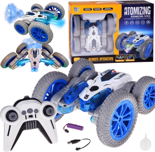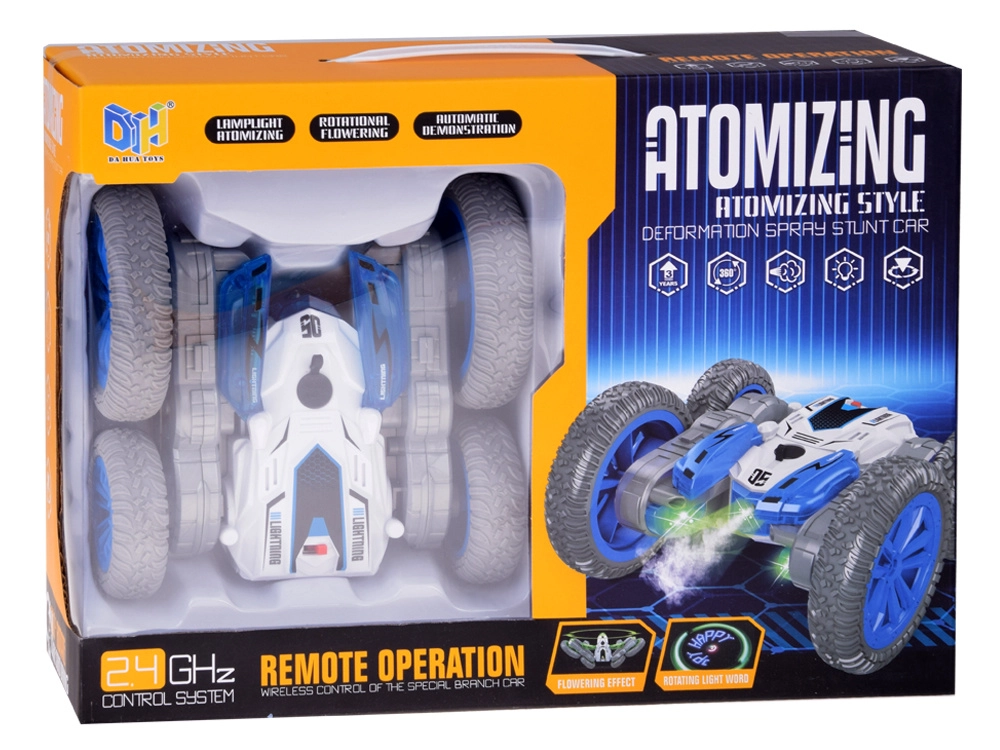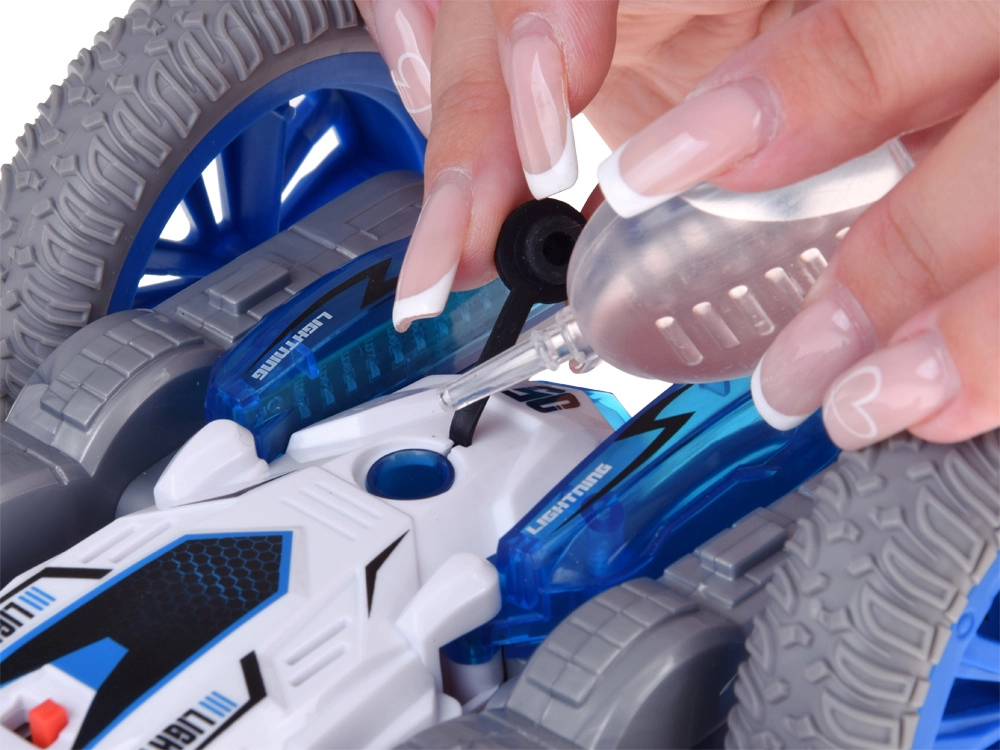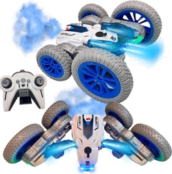 Този каскадьорски RC автомобил е създаден за адреналиново шофиране у дома и на гладка външна повърхност. Благодарение на огромните колела и пъргавата конструкция прави превъртания, движение по „корем и гръб“, бързи смени на посоката и впечатляващи 360° ротации. Ефектът от подсветена водна пара и двуцветни LED диоди придава атрактивна визия по време на движение.
