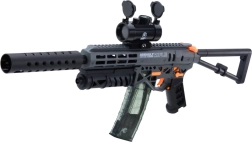 Моделът MK7 ще зарадва всеки, който обича екшъна. Благодарение на 7,4 V Li акумулатор е готов за дълга игра без излишни прекъсвания. Сменяемите пълнители позволяват бърза смяна на мунициите, а оптичният мерник помага за по-точни попадения. Сгъваемият приклад придава тактическа характеристика и удобно напасване към играча.