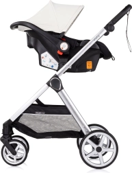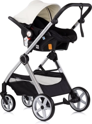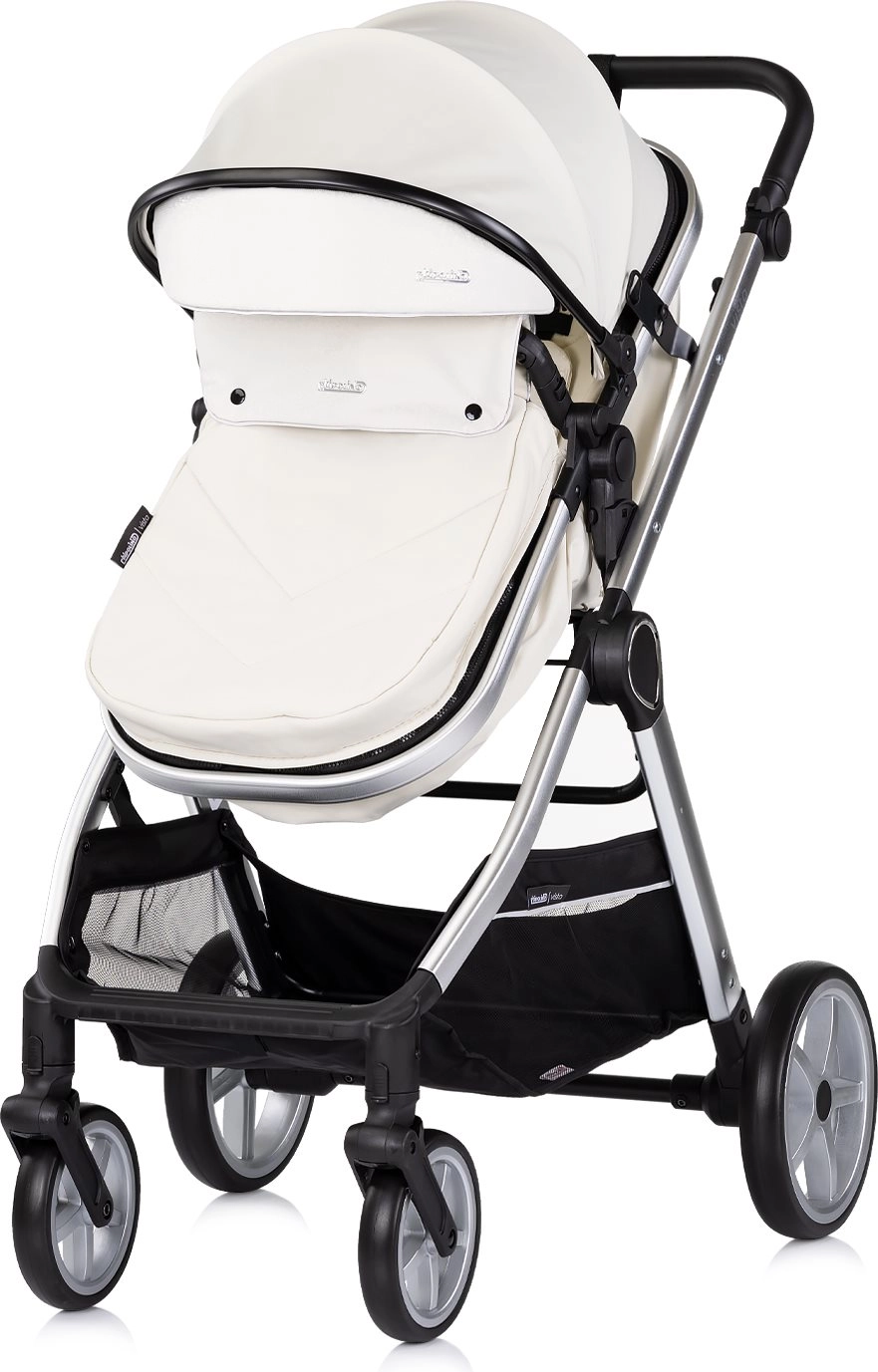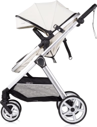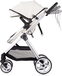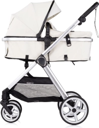 Елегантна и практична количка 2в1 за новородени и малки деца с лек алуминиев рам, въртящ се модул на седалката (по и срещу посоката на движение) и възможност за преобразуване в дълбок кош. Предлага пълно окачване на всички колела, регулируема по височина дръжка с предпазна каишка, регулируем сенник със слънцезащита и прозорче и просторен кош. В комплекта има подплатен чувал за крачета и чанта за повиване.