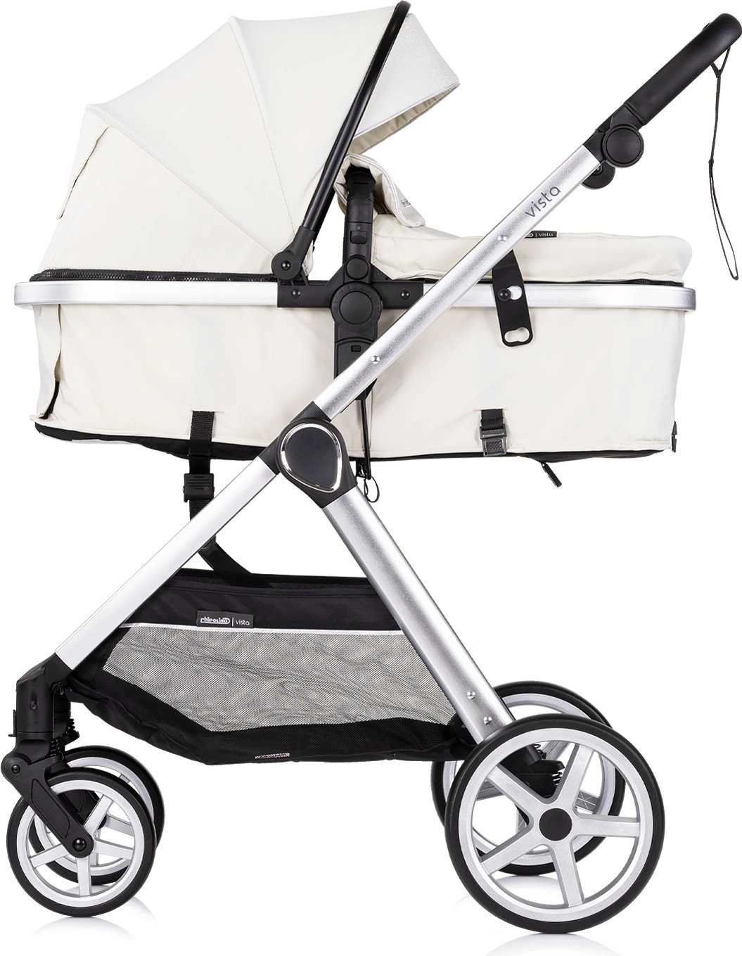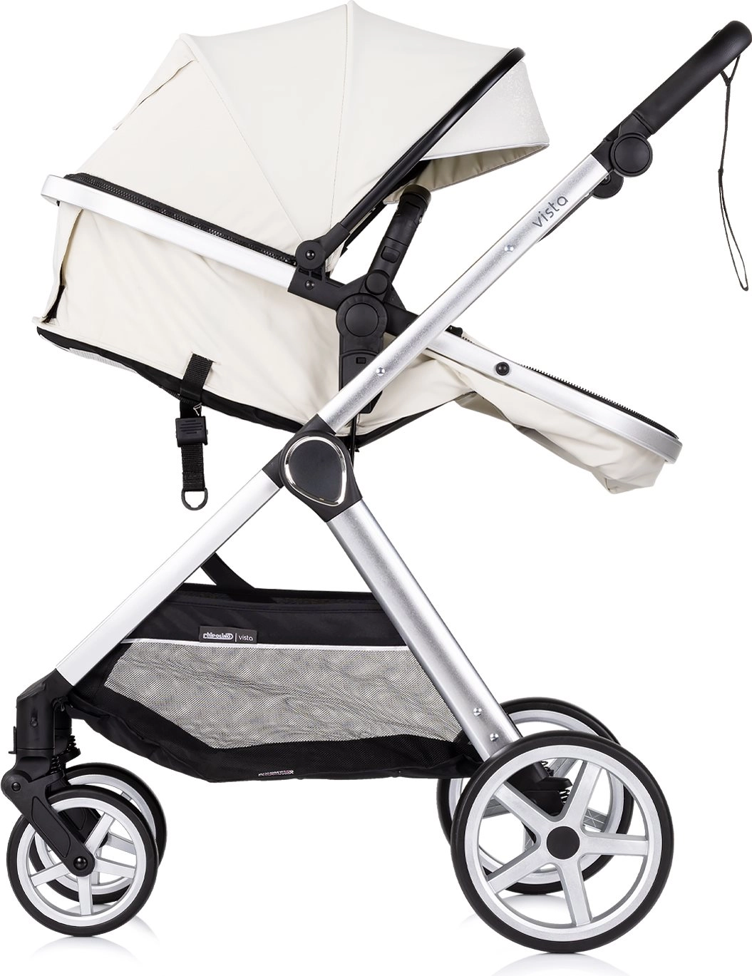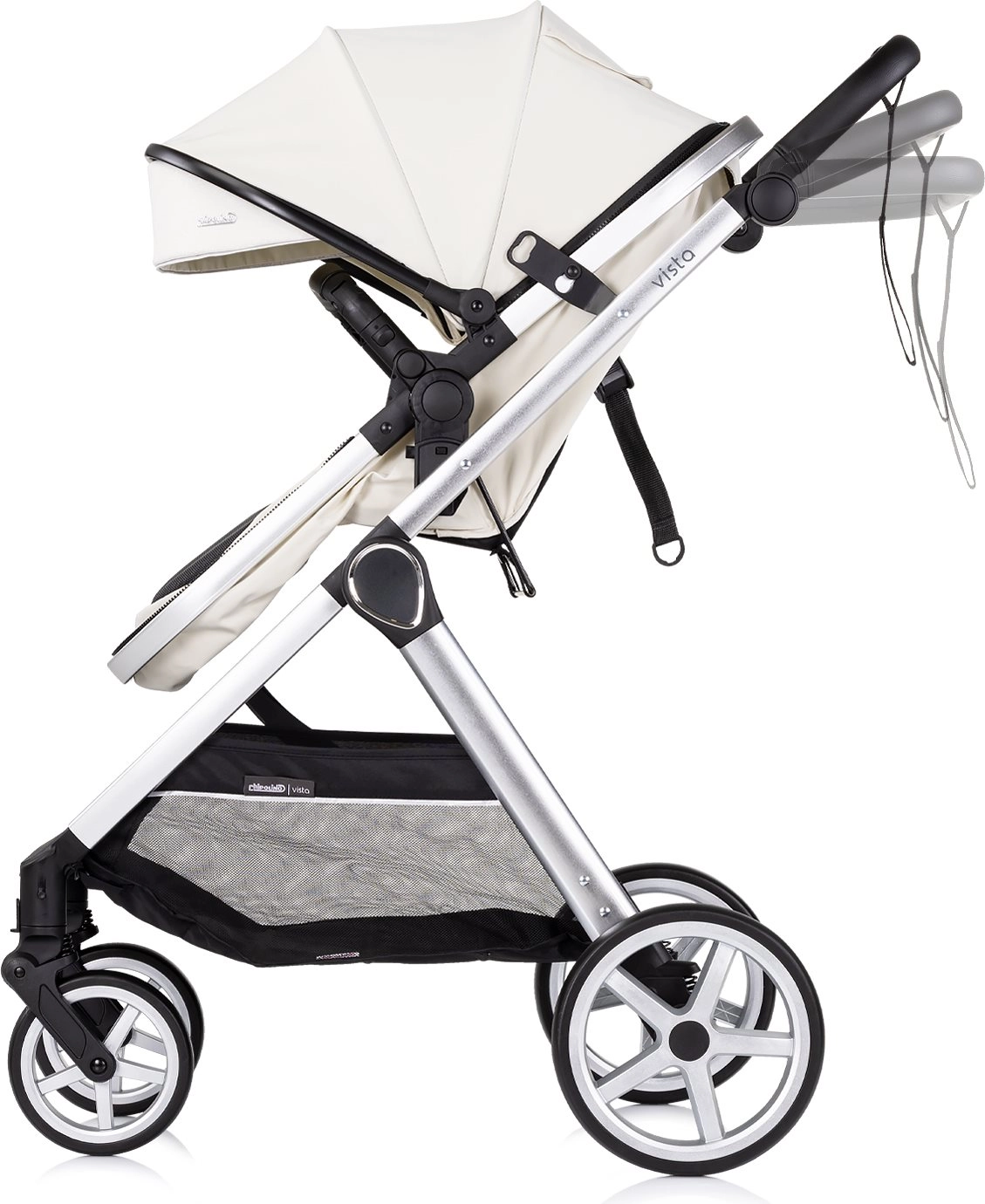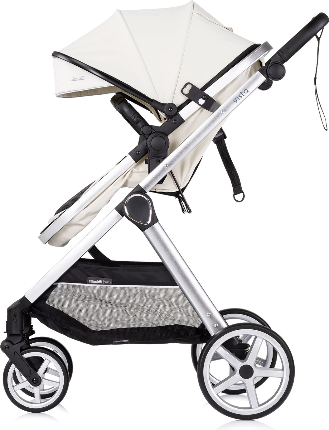 CHIPOLINO Vista 2в1 Biscotta е стилна комбинирана количка, която лесно се адаптира към ежедневните нужди на родителите. Седалъчният модул за миг се превръща в удобен кош за новородено, а възможността за монтаж по или срещу посоката на движение осигурява комфорт и контакт с детето.