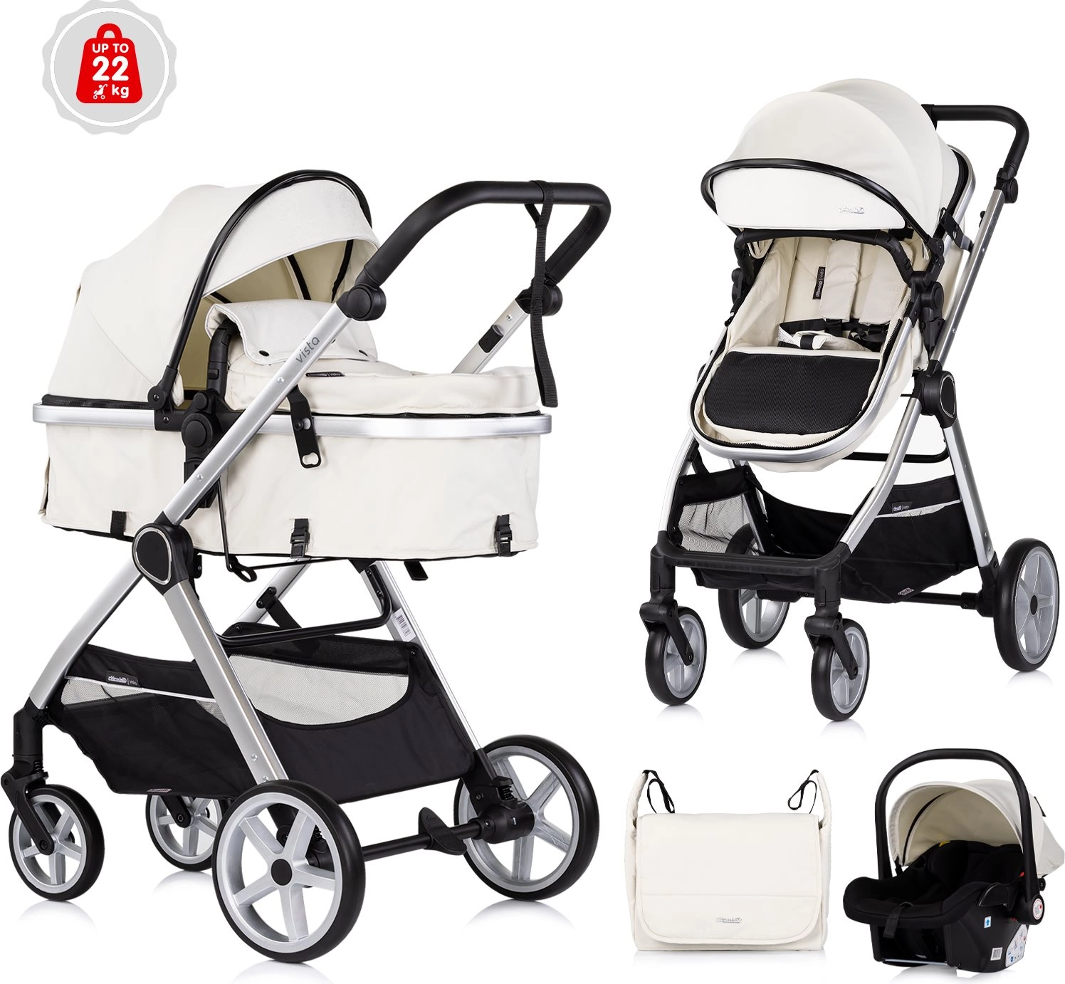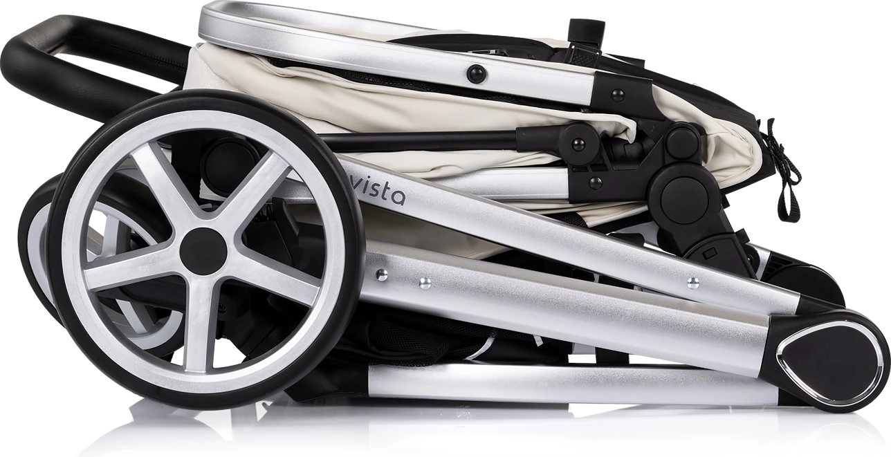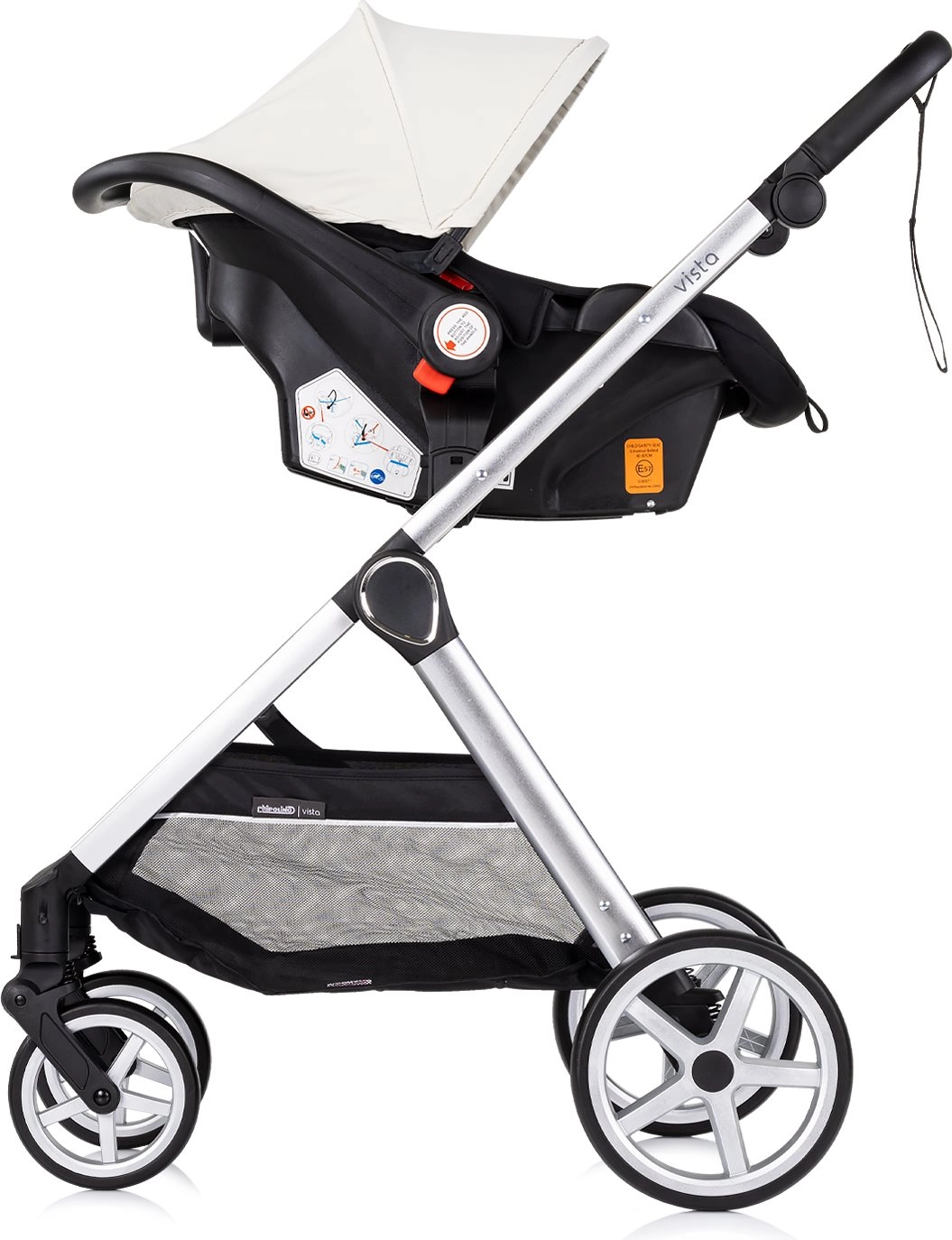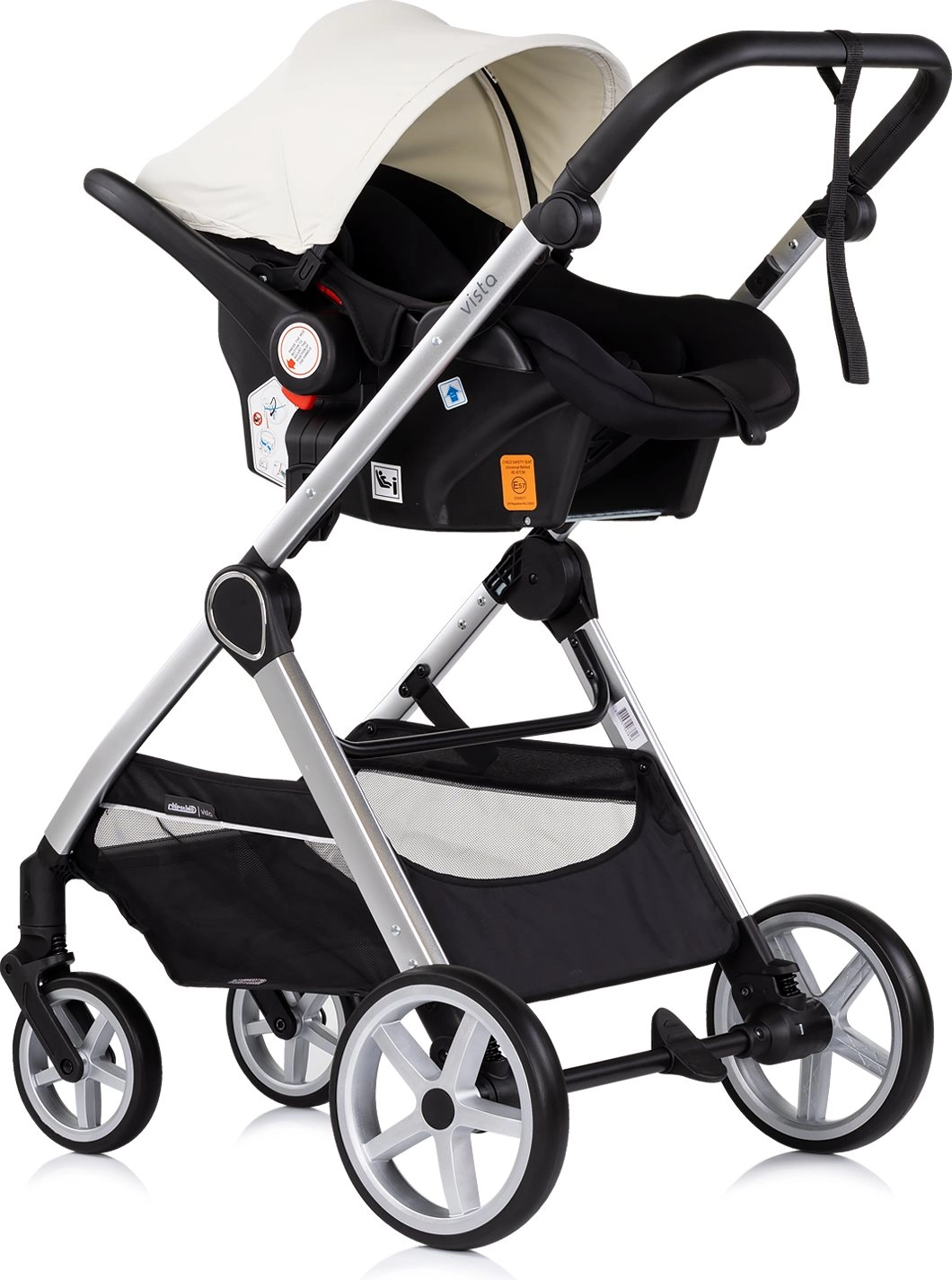 CHIPOLINO Vista 2в1 Biscotta е стилна комбинирана количка, която лесно се адаптира към ежедневните нужди на родителите. Седалъчният модул за миг се превръща в удобен кош за новородено, а възможността за монтаж по или срещу посоката на движение осигурява комфорт и контакт с детето.
