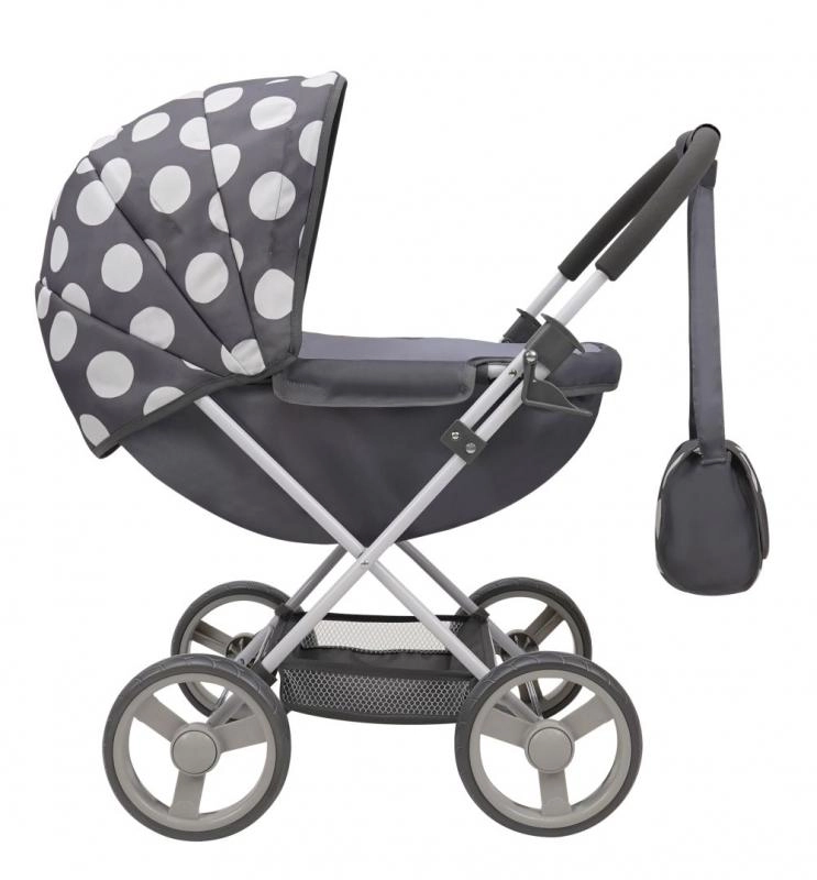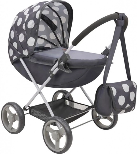 Стилна количка за кукли с мотив Катеричка ще зарадва всяка малка грижовница. Предлага сгъваема рамка за лесно съхранение, мека пенеста дръжка и прибиращ се сенник за удобно играене у дома и навън. Подходяща за кукли до около 46 см и с практична кошница за пазаруване и чанта.
