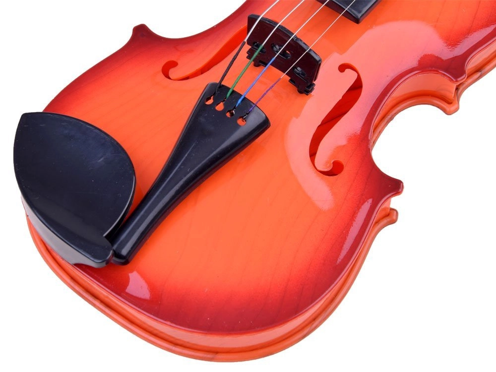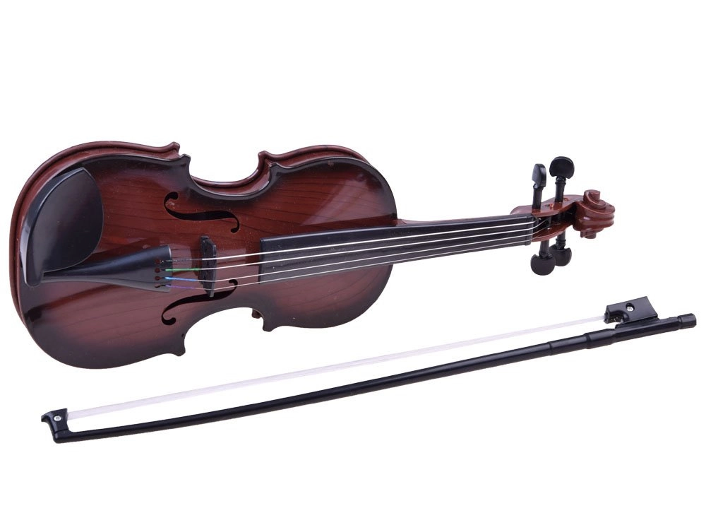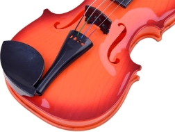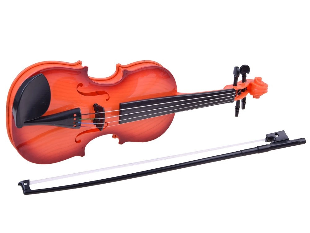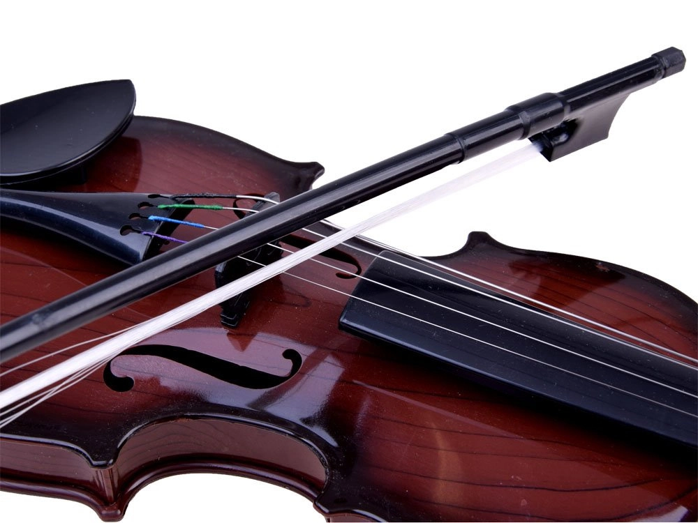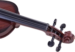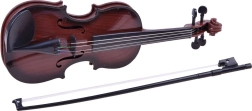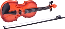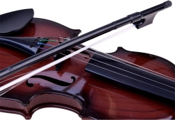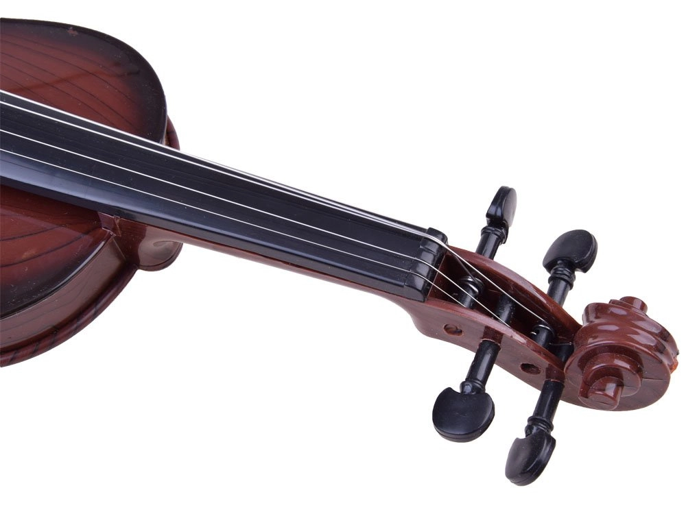 Детската цигулка в кафяв „дървен“ декор с четири метални струни и лек лък от синтетични влакна предлага забавно въведение в света на музиката. Благодарение на компактните размери приляга добре в малки ръце и мотивира развитието на ритъм и слух.