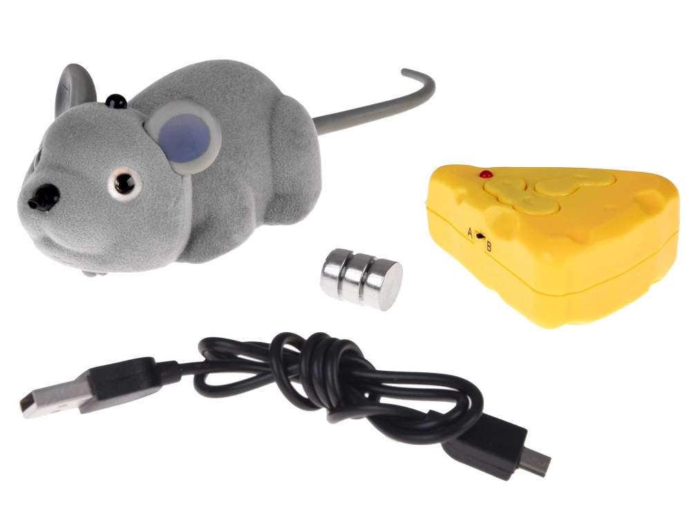 В комплекта е включен контролер във формата на сирене с интуитивно управление – движение напред/назад, завиване надясно/наляво и специално колелце за плавни завои. В кутията ще намерите още USB кабел за зареждане и батерии за незабавна забава. Идеална като интерактивна играчка за котки и забавен подарък за приятели.
