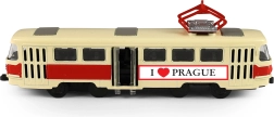 Стилна метална ретро трамвай T3 в мащаб 1:87 е перфектен подарък и колекционерско бижу. Предлага реалистична изработка с надпис I ♥ PRAGUE, механизъм за обратно движение за плавно придвижване и ръчно отваряеми врати в средата. Компактната дължина около 16 см е подходяща както за витрина, така и за игра.