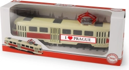 Тази метална ретро трамвай T3 е икона на пражките улици и легенда сред превозните средства на градския транспорт. Отличава се с детайлна каросерия, реалистични прозорци и функционален пантограф на покрива. Благодарение на обратния ход след навиване потегля плавно и ще зарадва както деца, така и възрастни колекционери.