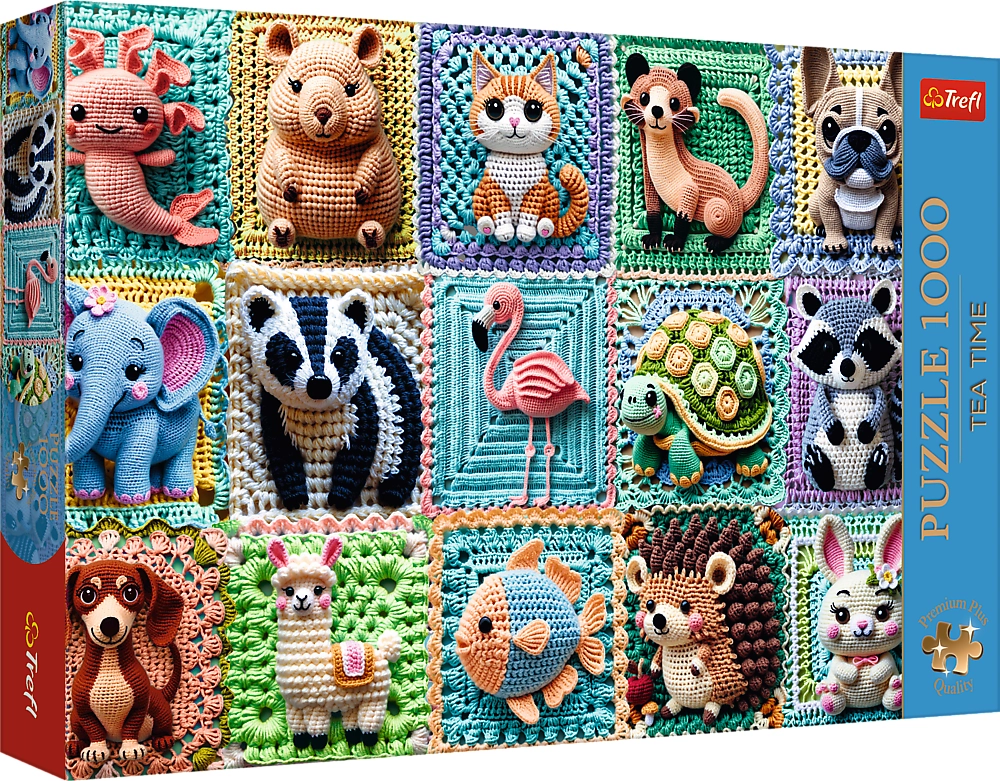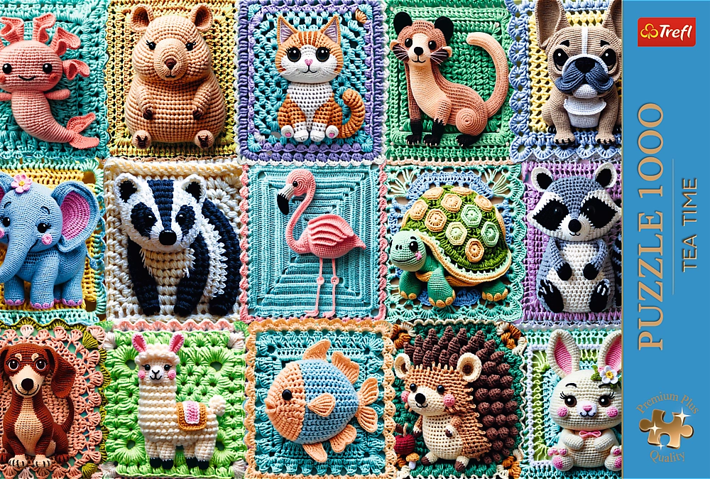 Открийте успокояващия свят на пъзелите с премиум серията TREFL Premium Plus. Мотивът с нежни плетени животни радва очите и душата, а прецизно изрязаните части осигуряват перфектно пасване и плавен ход на подреждане. Екстра здравият картон държи частите стабилно една с друга, така че можете удобно да премествате готови сегменти.