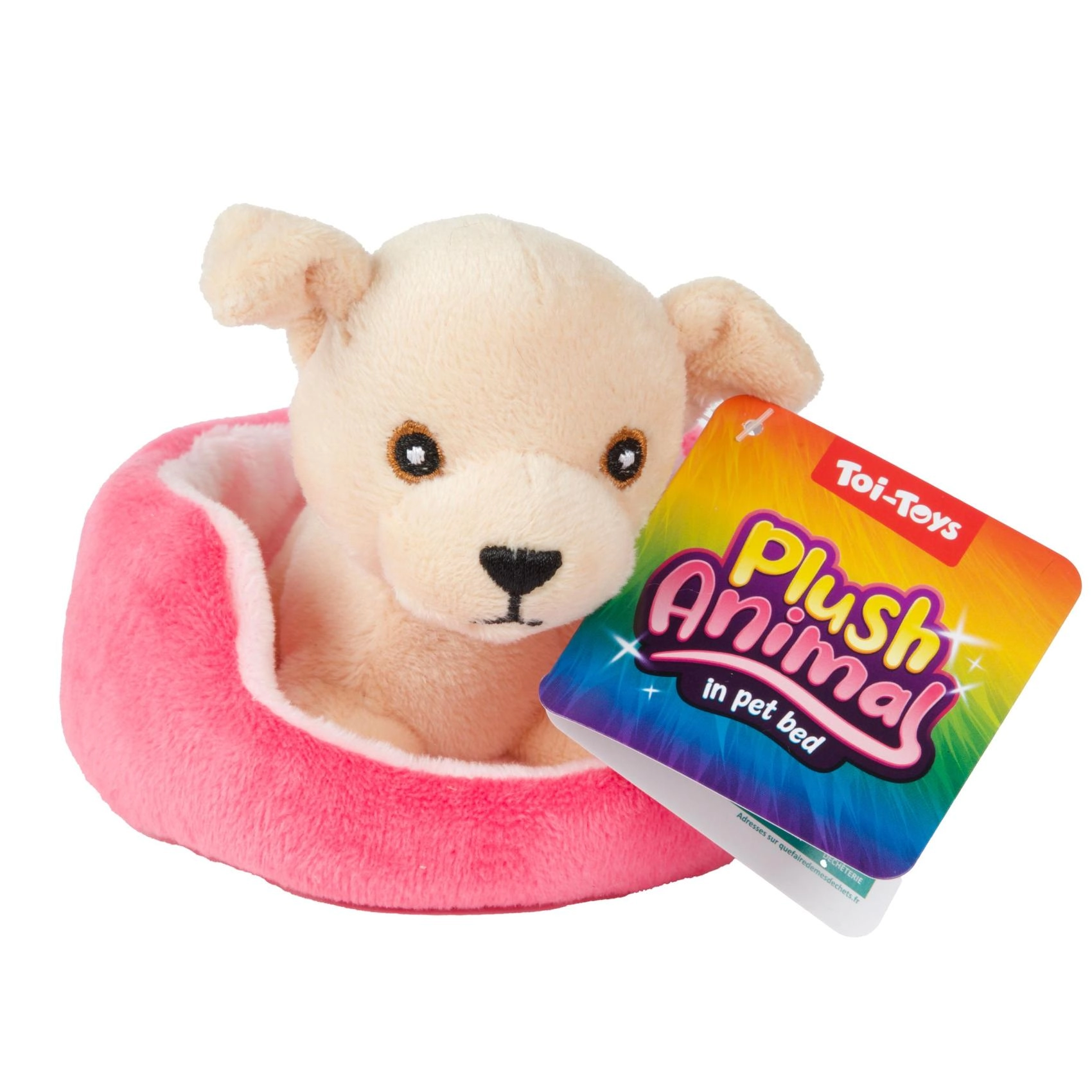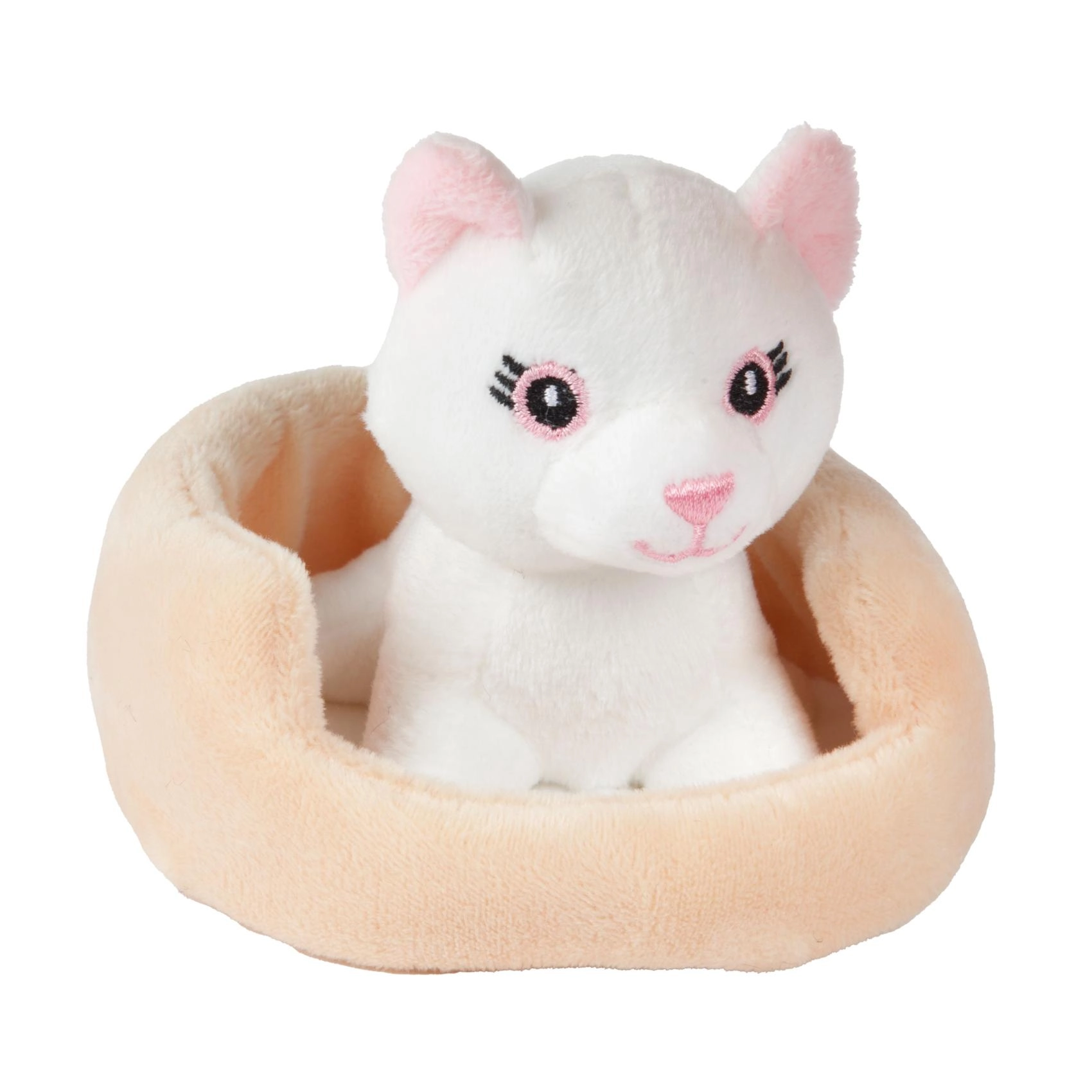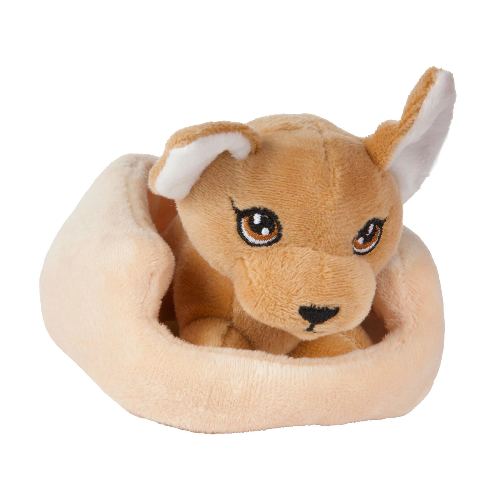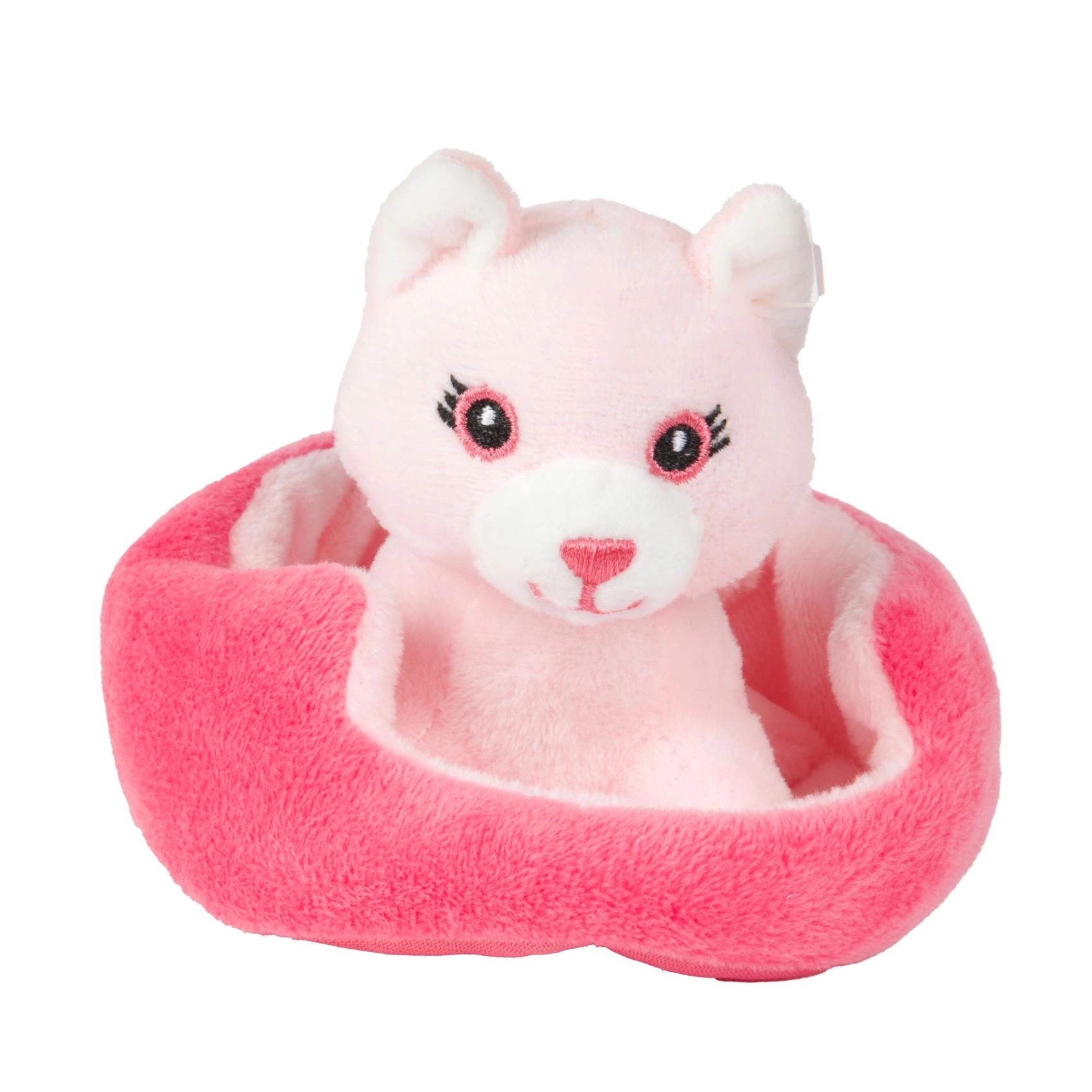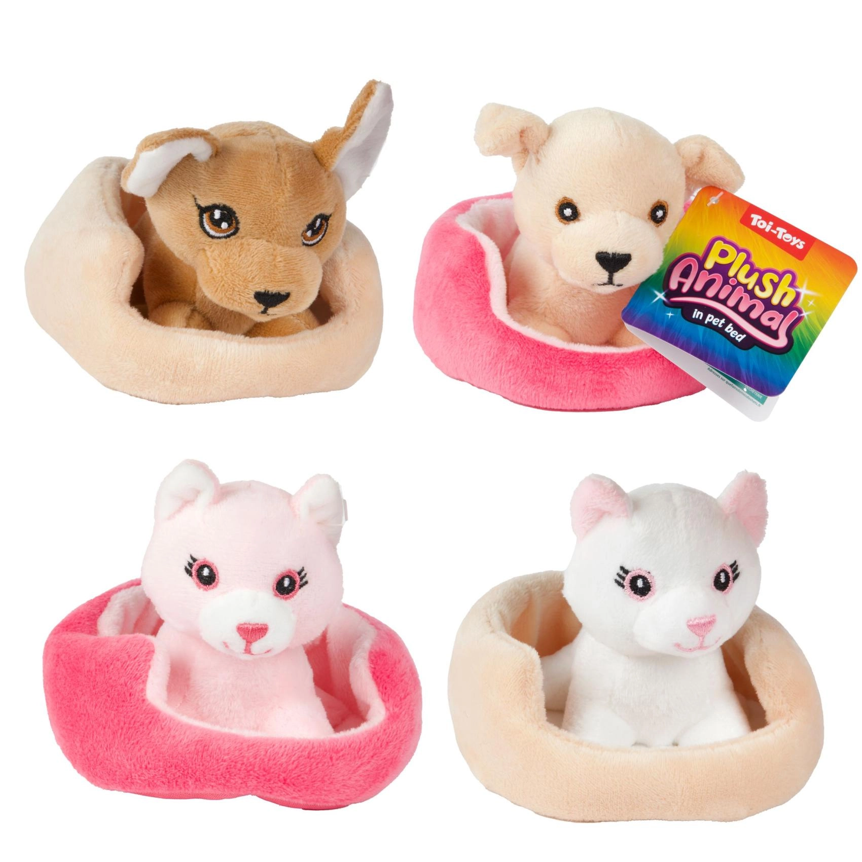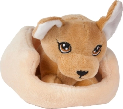 Това сладко плюшено котенце или кученце в уютно легълце е перфектен приятел за ежедневни игри и заспиване. Благодарение на мекия плюш и компактния размер се държи лесно и от най-малките ръчички и насърчава фантазията и грижовните игри.