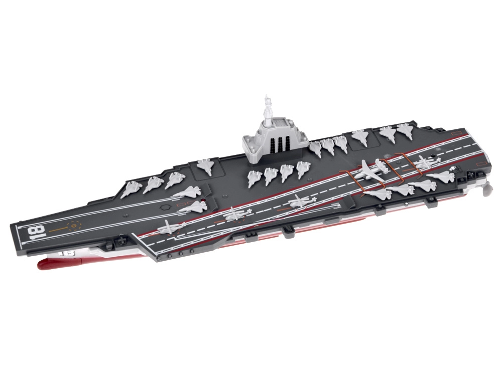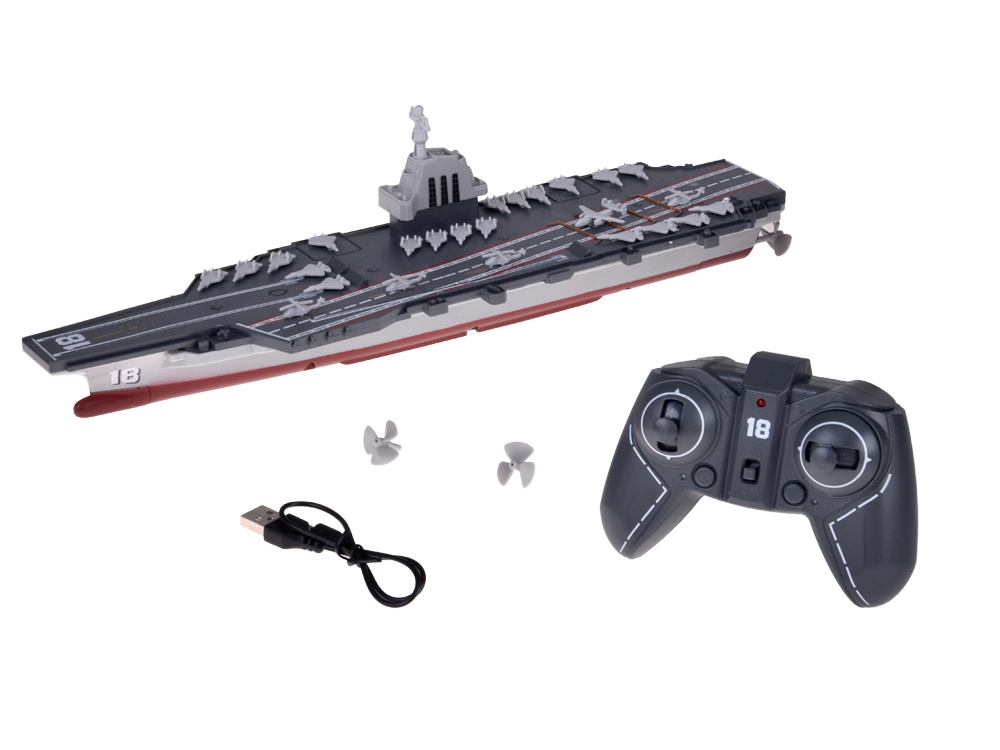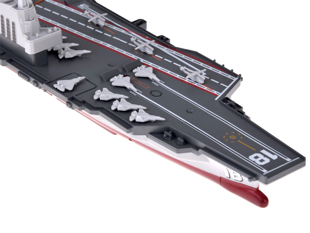Този дистанционно управляван самолетоносач достоверно пресъздава истинска палуба с маркировки на пистите, „остров“ с кула и флотилия миниатюрни самолети. Благодарение на прегледния геймпад контролер управлението е интуитивно – напред/назад, ляво/дясно – а USB зареждането осигурява удобна употреба у дома и край вода.