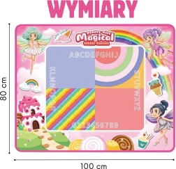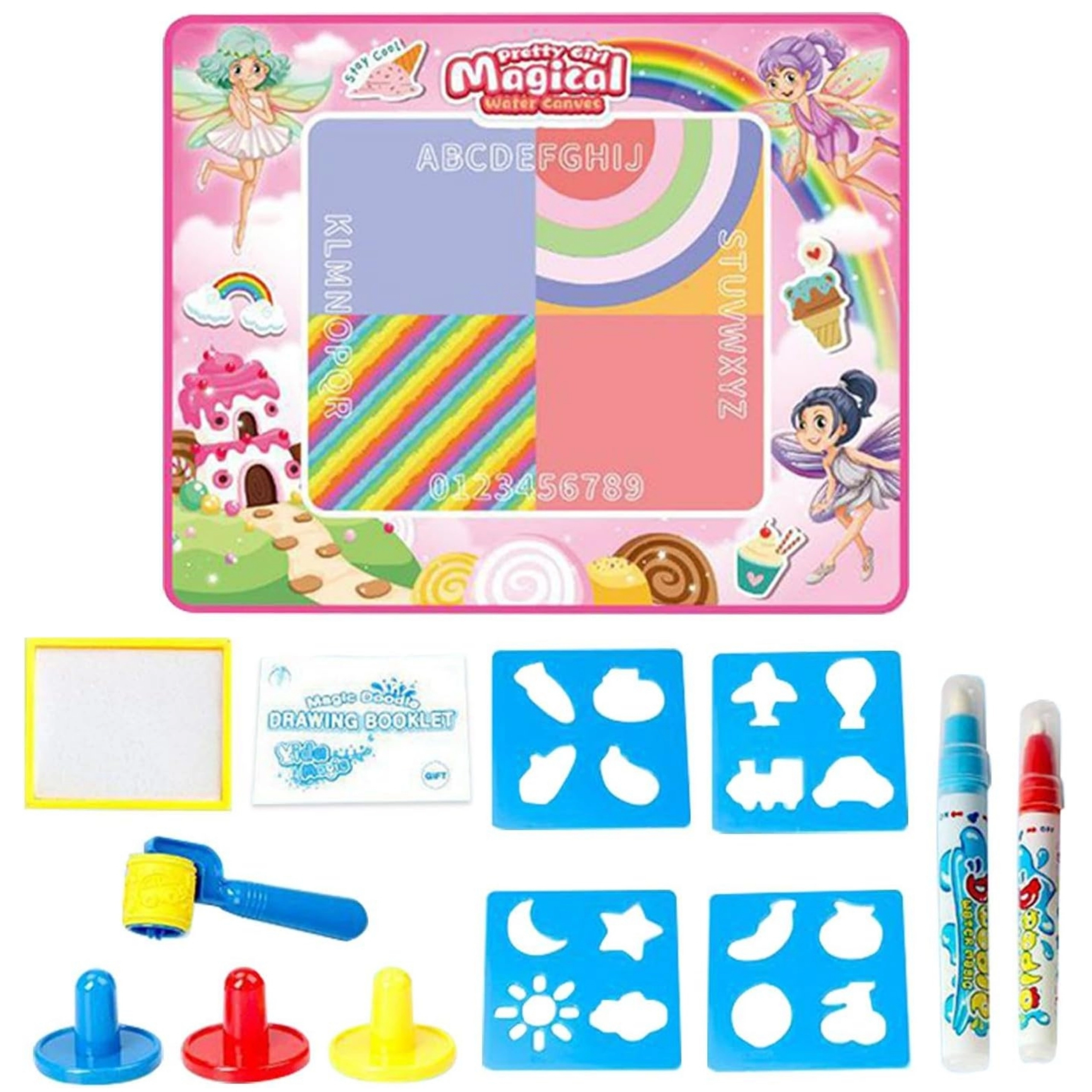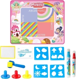 Водната подложка за рисуване WOOPIE предлага на децата чисто и безопасно рисуване само с вода – без бъркотия, петна и мастило. Рисунките изчезват сами след няколко минути, така че децата могат да творят отново и отново. Големият формат, богатите аксесоари и вълшебният мотив с феи в пастелни цветове насърчават въображението, фината моторика и дълги часове творческа игра у дома и в двора.